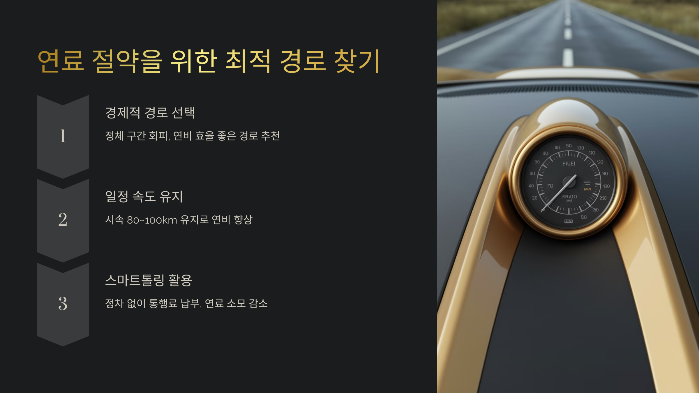 장거리 운전에서 연료 절약은 매우 중요해요. 연료를 절약하기 위해서는 최적의 경로를 선택하는 것이 핵심이에요. 실시간 교통정보를 활용하면 불필요한 정체 구간을 피하고, 경제적인 운전이 가능해요.