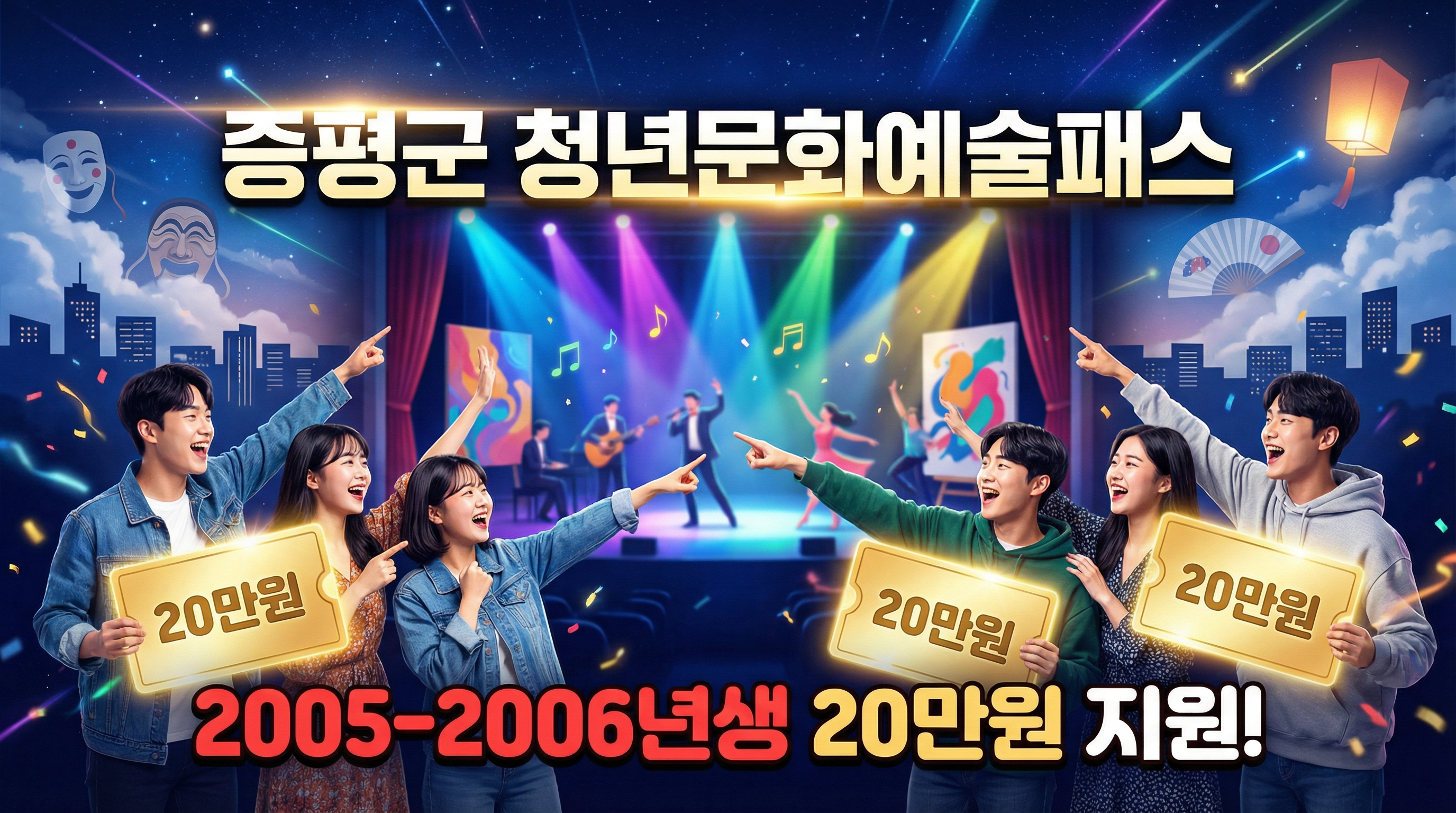 안녕하세요! 증평군에 거주하시는 청년 여러분, 그리고 자녀를 둔 부모님들 모두 주목해주세요! 😊 오늘 정말 반가운 소식이 들려왔습니다. 바로 우리 증평군이 2005년생과 2006년생 청년들을 대상으로 문화생활비를 무려 **20만 원**이나 지원한다는 소식인데요. 요즘 영화 한 번 보려 해도, 전시회 한 번 가려 해도 물가가 너무 올라서 망설여졌던 분들에게는 그야말로 가뭄에 단비 같은 정책이 아닐까 싶어요.