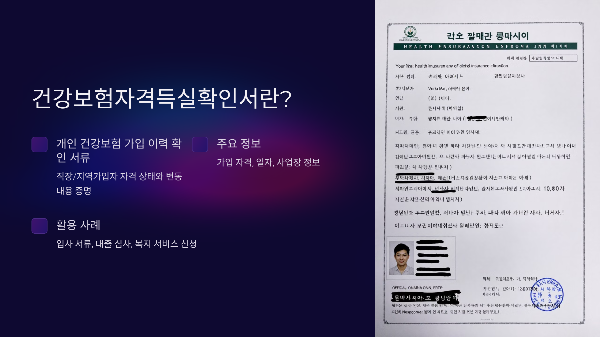 직장가입자나 지역가입자의 자격 상태와 변동 내용을 증명할 수 있어요.