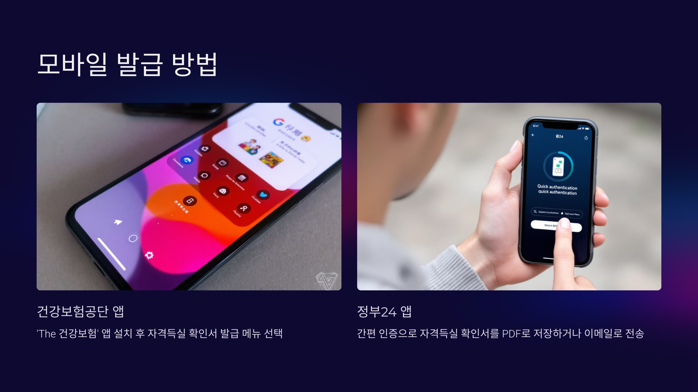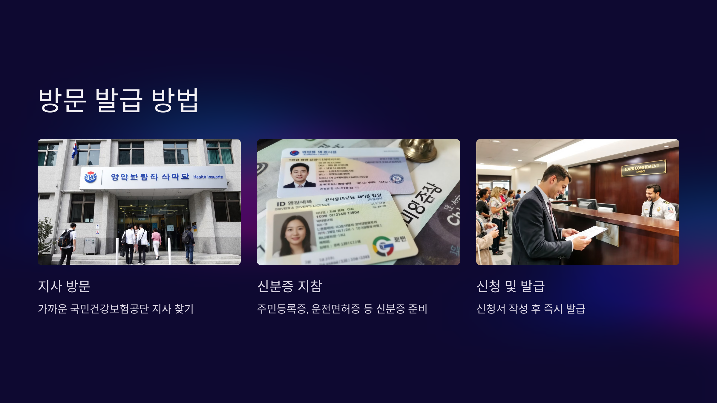 직접 방문을 선호하거나 디지털 기기 사용이 어려운 경우에는 공단 지사에서 발급 가능합니다.