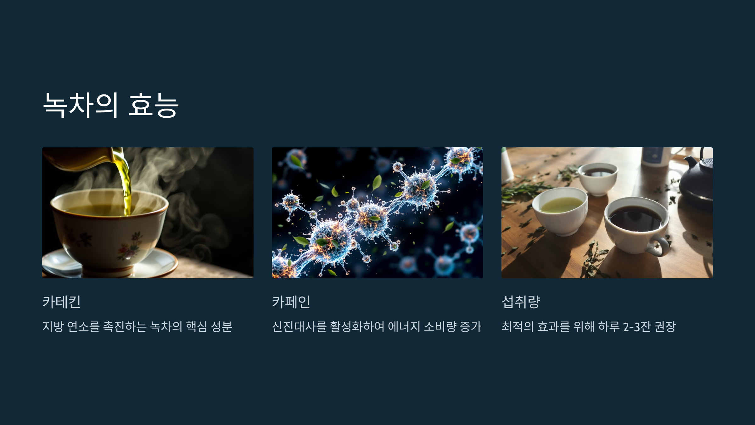 특히 운동 전 녹차를 섭취하면 체지방 연소 효과가 더욱 높아질 수 있습니다.