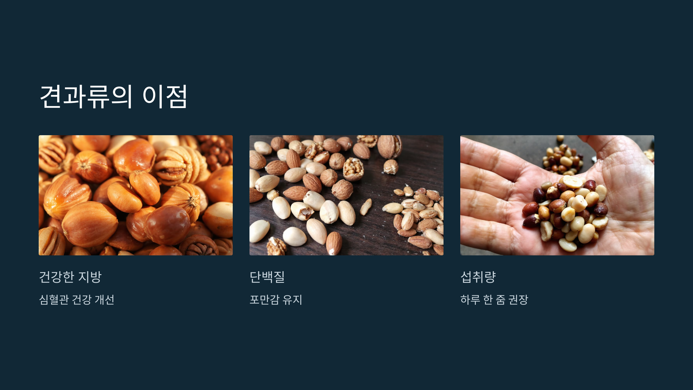 견과류는 체중 관리뿐 아니라 심혈관 건강에도 좋습니다.