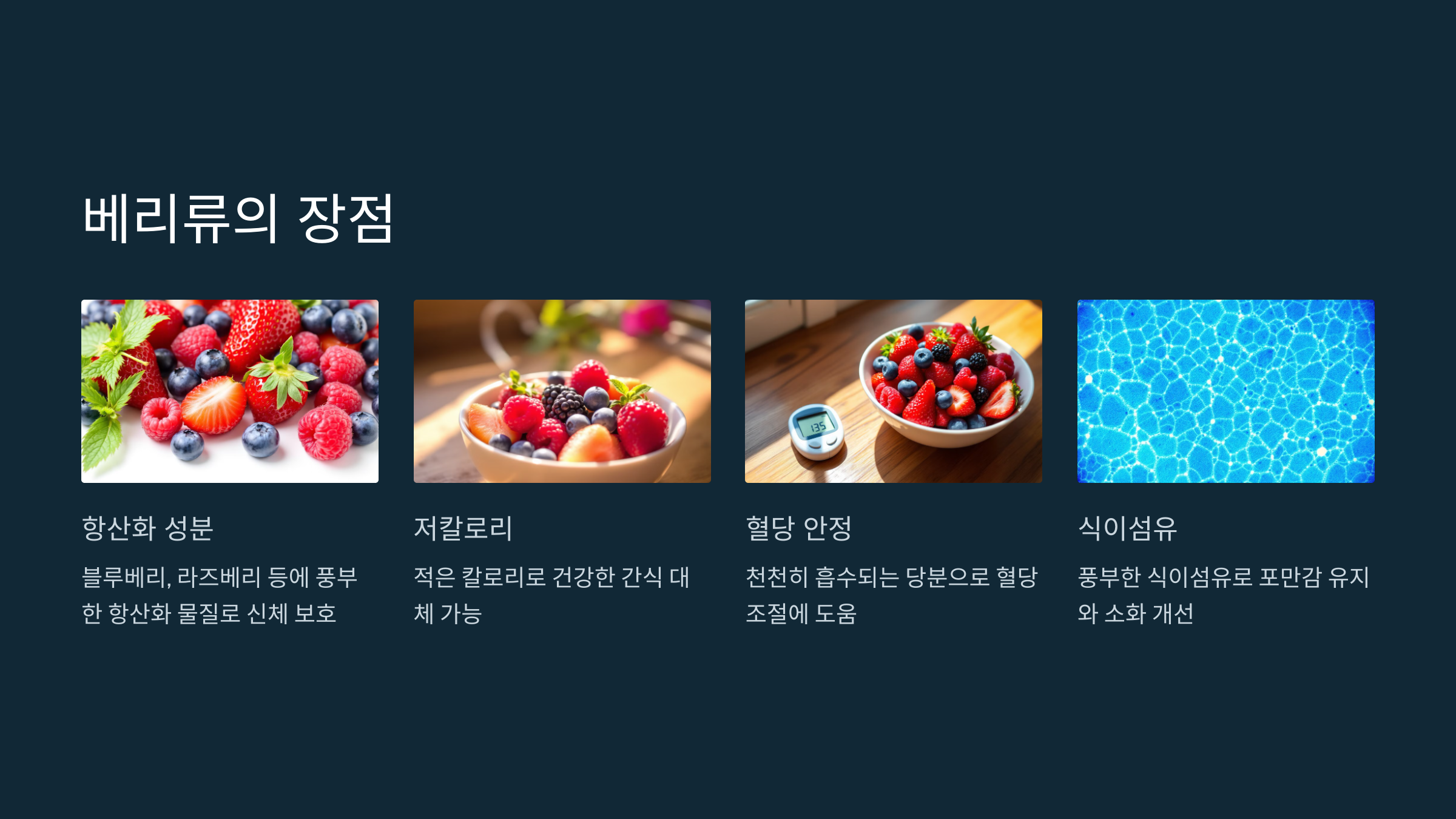 베리류는 혈당 수치를 안정적으로 유지하는 데 도움을 줍니다.