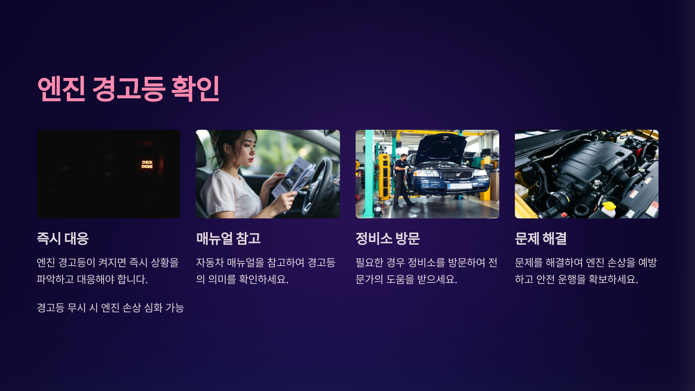 엔진 경고등은 차량에 문제가 있음을 알리는 중요한 신호입니다.