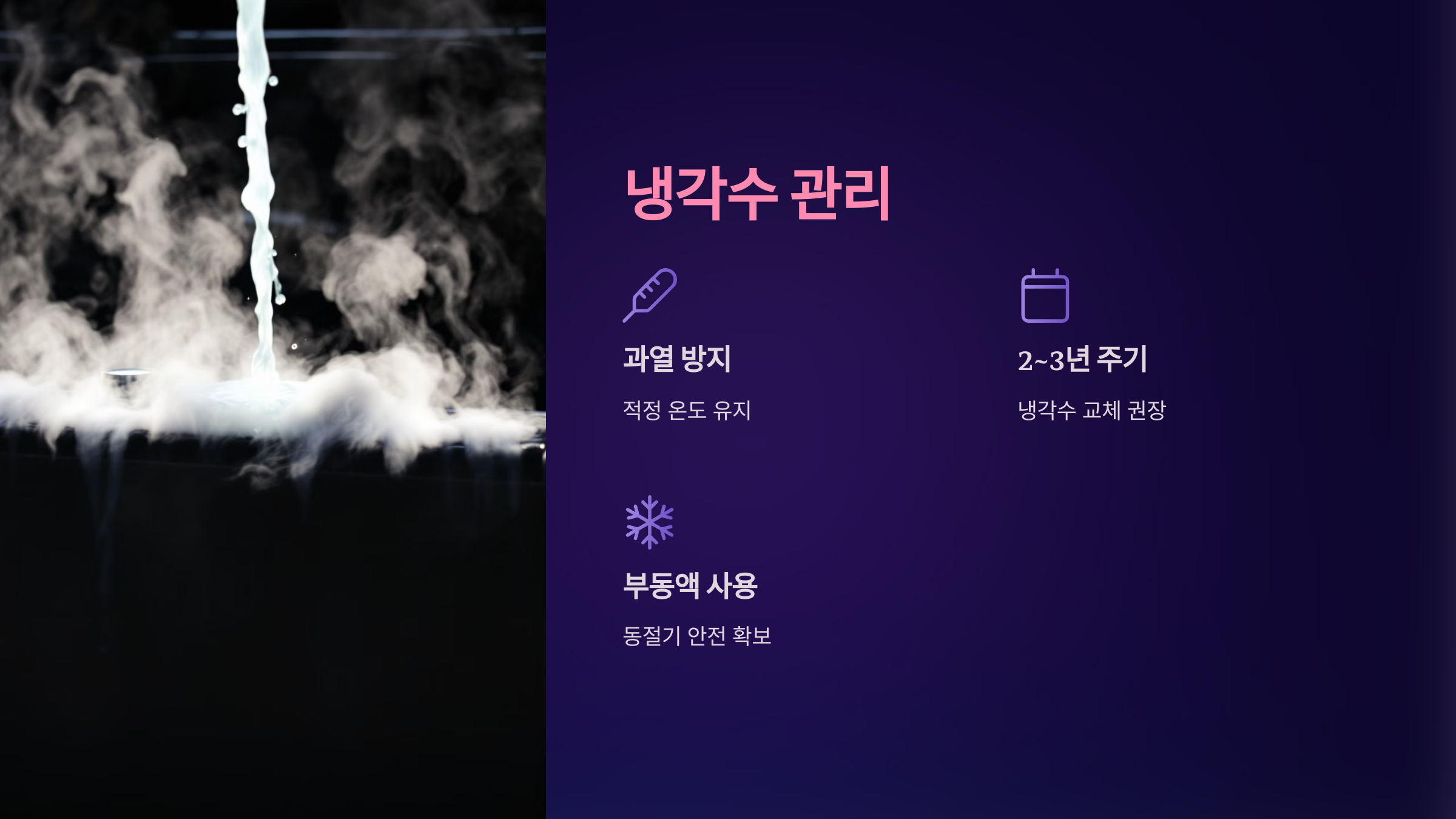 냉각수는 주로 2~3년마다 교체하는 것이 권장됩니다.