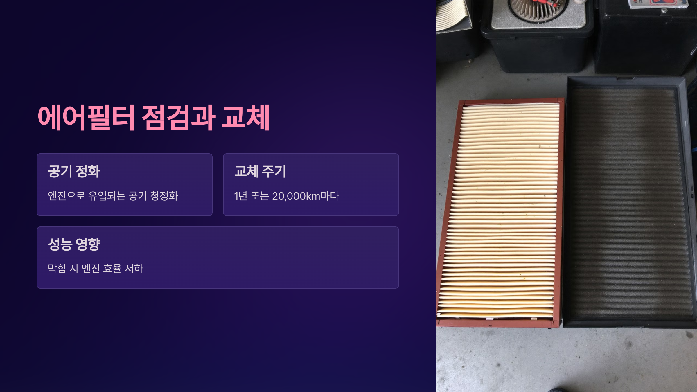 필터가 막히면 엔진 성능이 저하될 수 있으므로 주기적인 점검이 필수입니다.