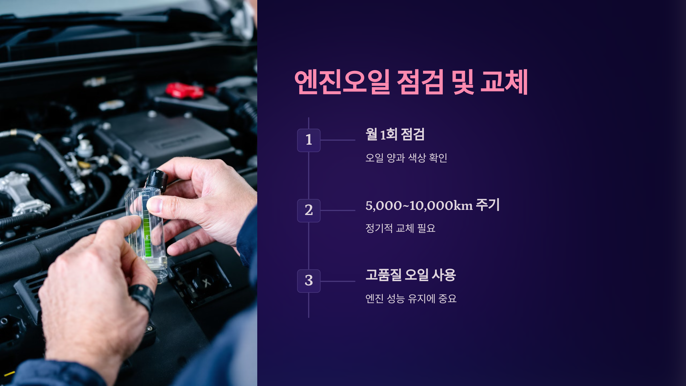 정기적인 오일 교체는 엔진 마모를 줄이고 수명을 연장합니다.