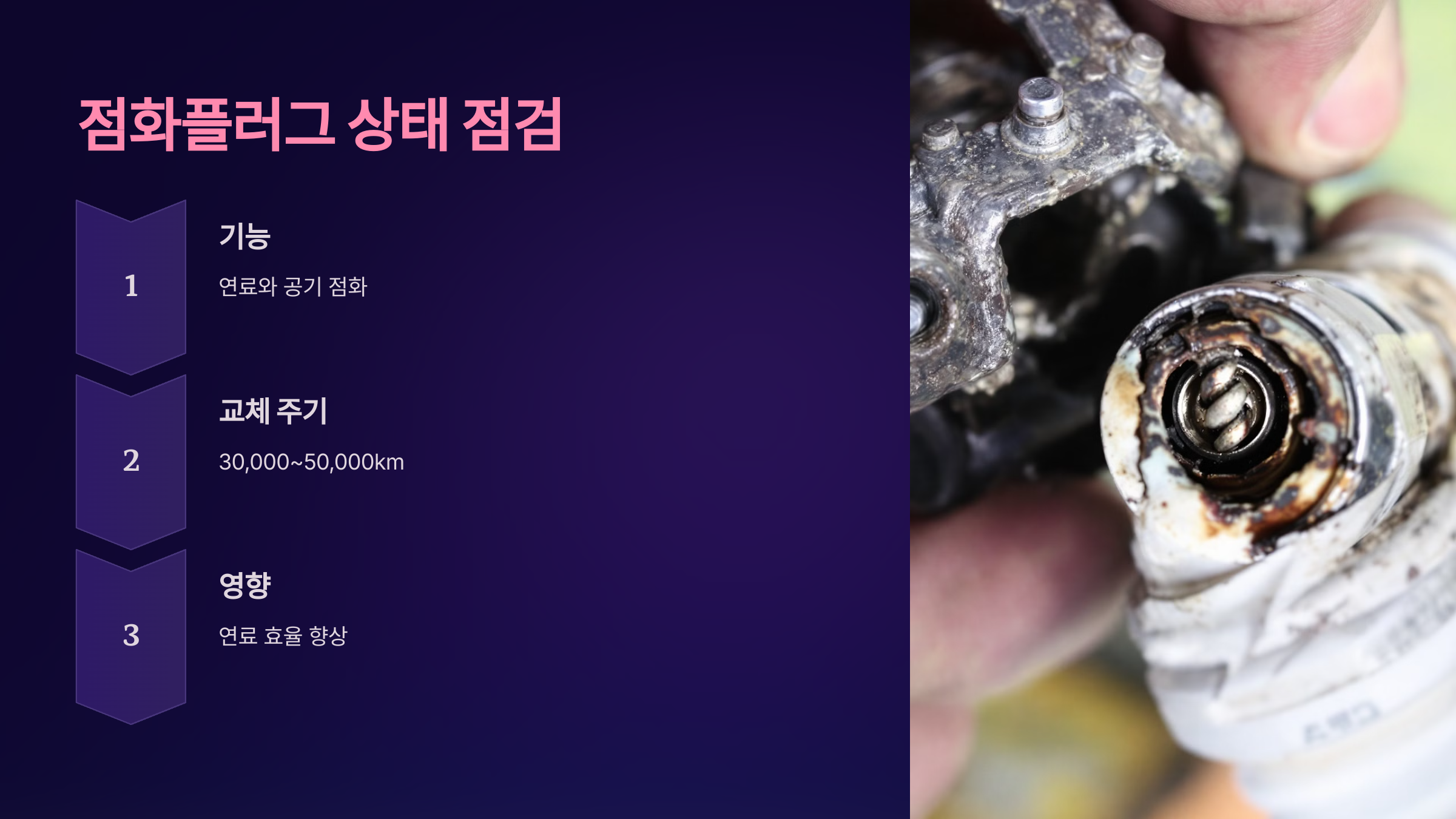 점화플러그 상태는 전문 정비소에서 점검받는 것이 안전합니다.