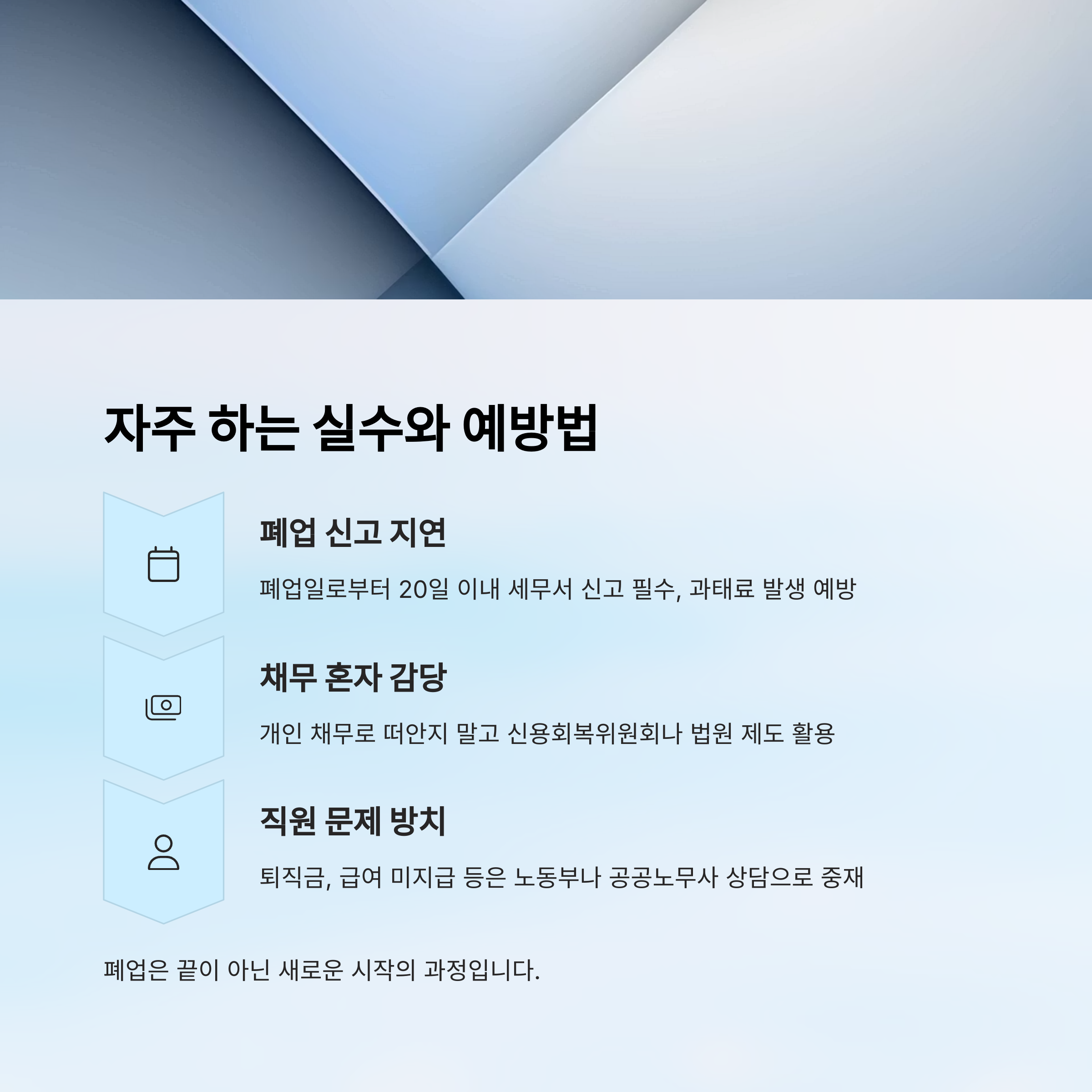 | 폐업 신고 지연 | 세금 과태료 발생 | 20일 이내 세무서 신고 |