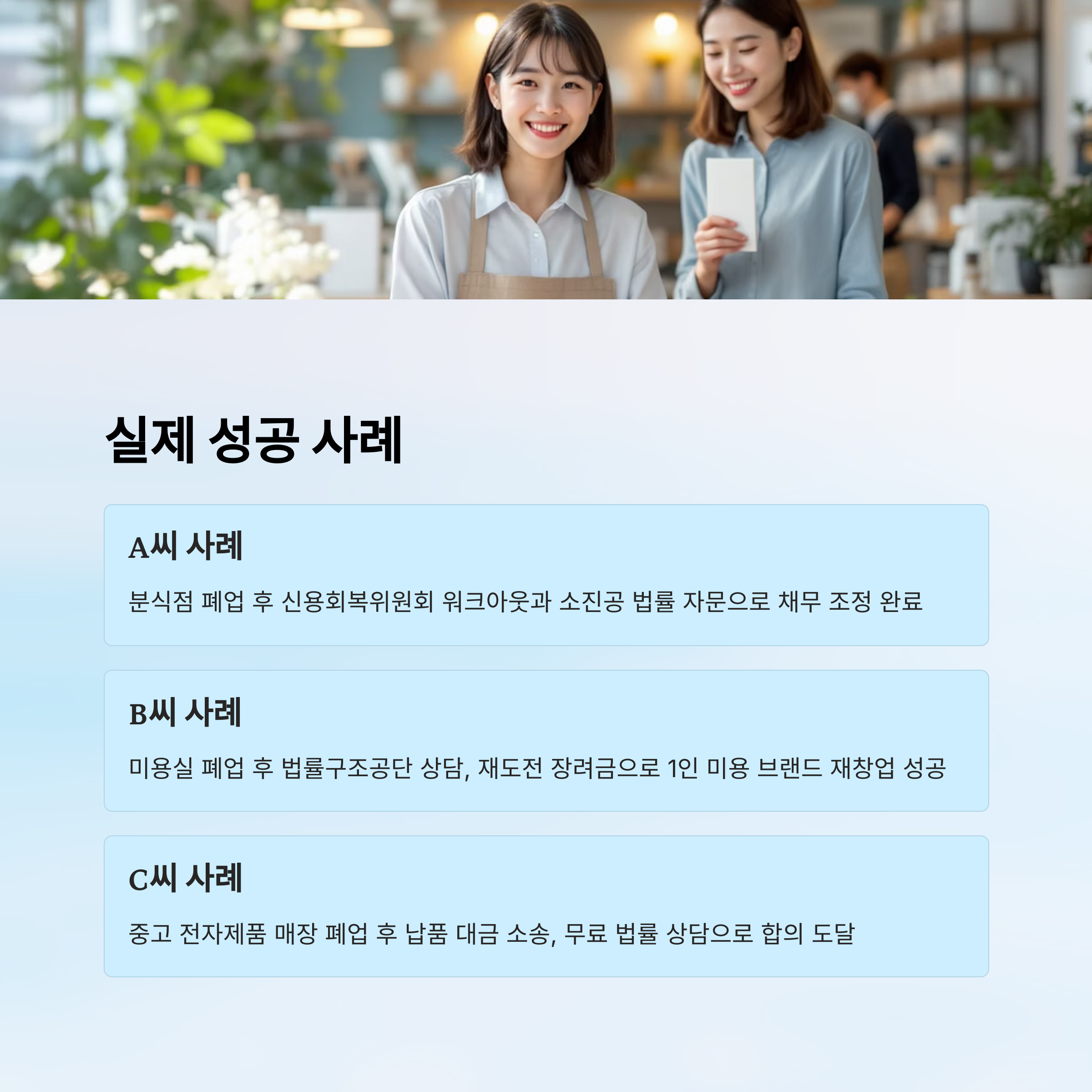 이론적인 정보만으로는 감이 잘 안 오죠? 그래서 실제 폐업 소상공인들이 겪었던 사례를 통해 법률 자문과 채무 조정, 정부 지원을 어떻게 활용했는지 알아보면 훨씬 현실감 있게 다가올 거예요. 여기 몇 가지 대표 사례를 소개할게요.