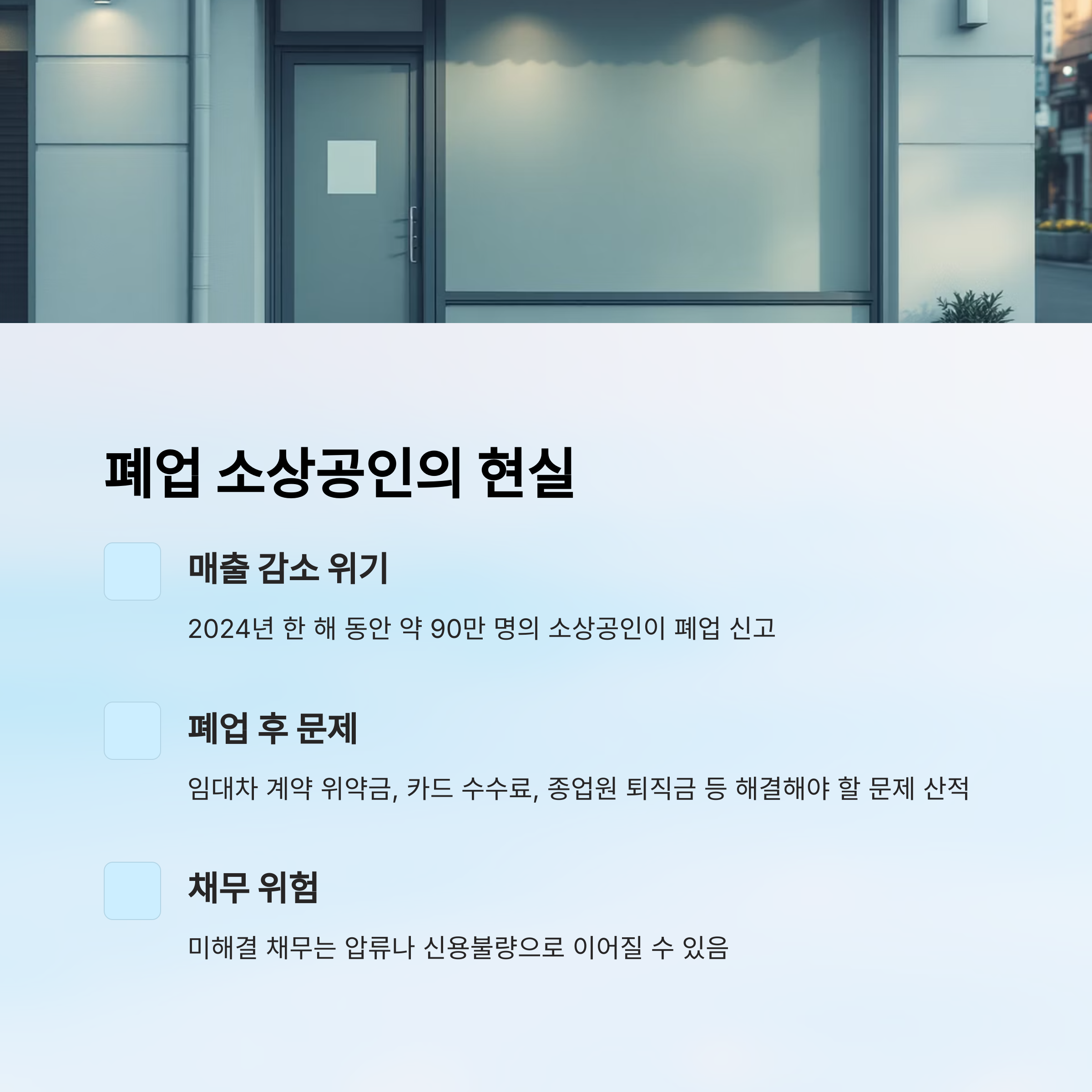 코로나19 이후, 많은 자영업자분들이 폐업이라는 어려운 선택을 하게 되었어요. 특히 소상공인의 경우 사업 운영 중 발생한 각종 채무와 법적 문제로 인해 심리적·경제적 부담이 커질 수밖에 없죠. 하지만 다양한 제도와 지원책을 제대로 알고 활용한다면, 새 출발도 가능하답니다.