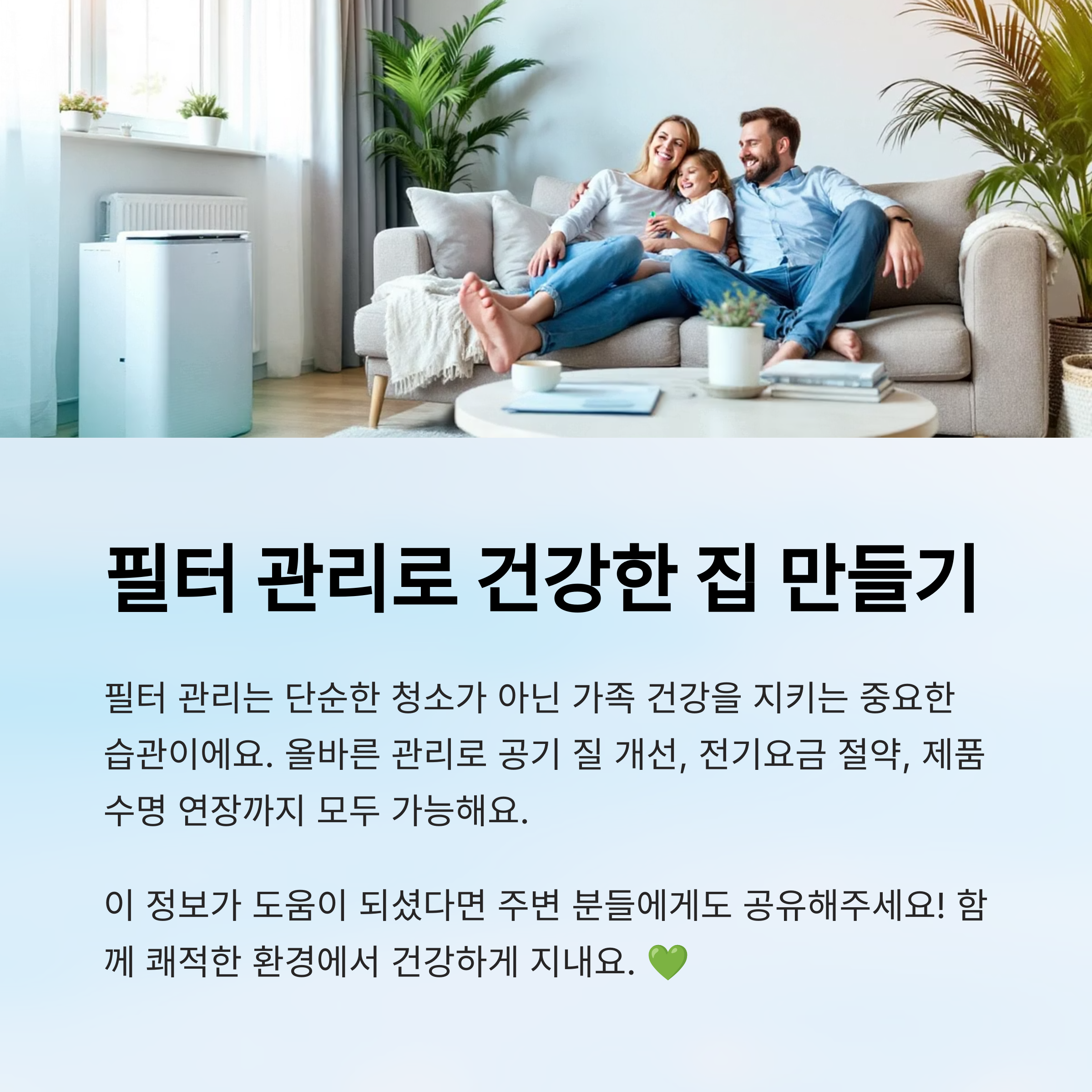 이제는 필터 청소가 귀찮은 일이 아니라, 습관처럼 편안하게 느껴질 수 있을 거예요. 정기적으로 실천하면 집안 공기가 확 달라지는 걸 체감할 수 있을 거예요. 🧽✨