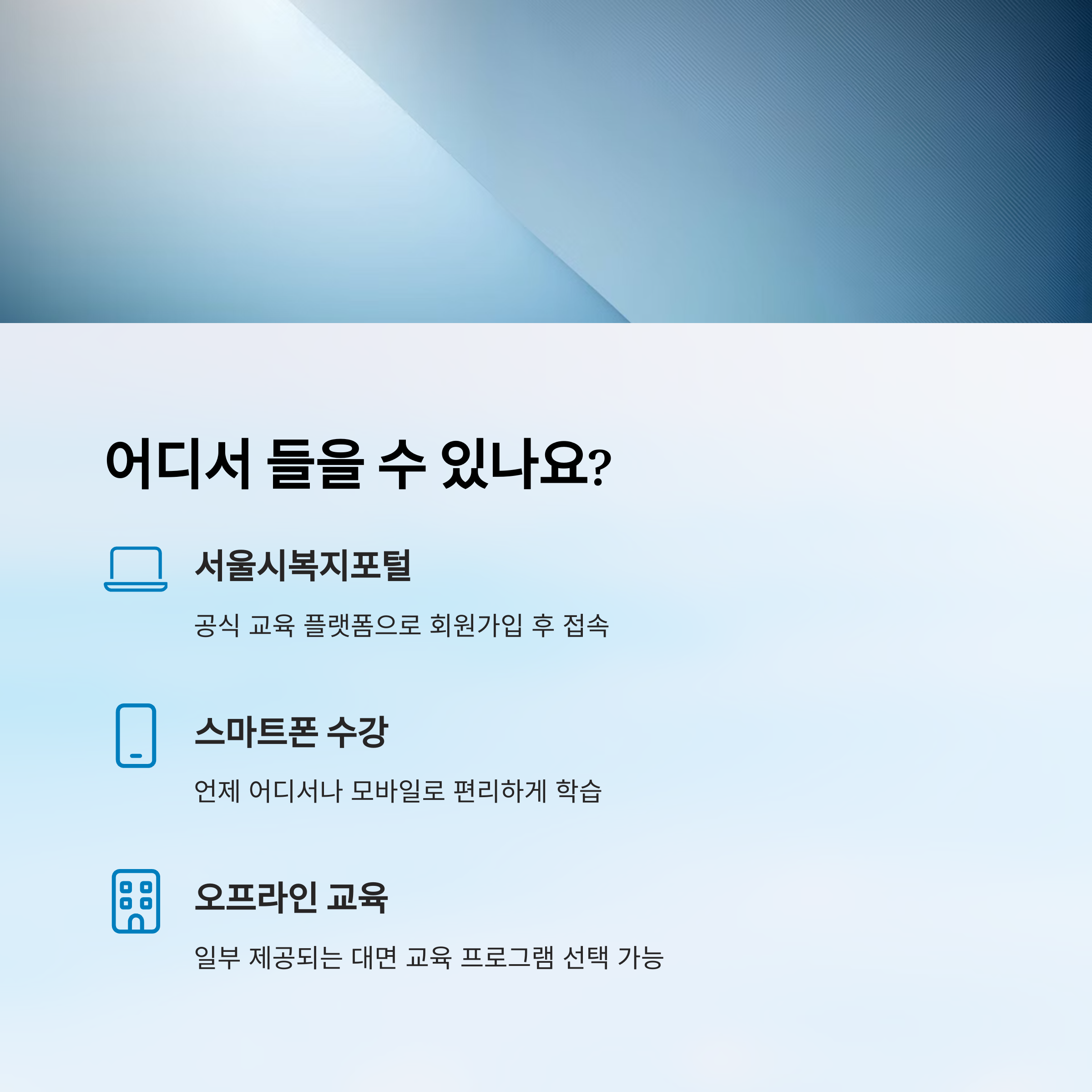 A3. 최근에는 대부분 온라인으로 진행되지만, 오프라인 교육도 일부 제공돼요. 선택 가능해요.