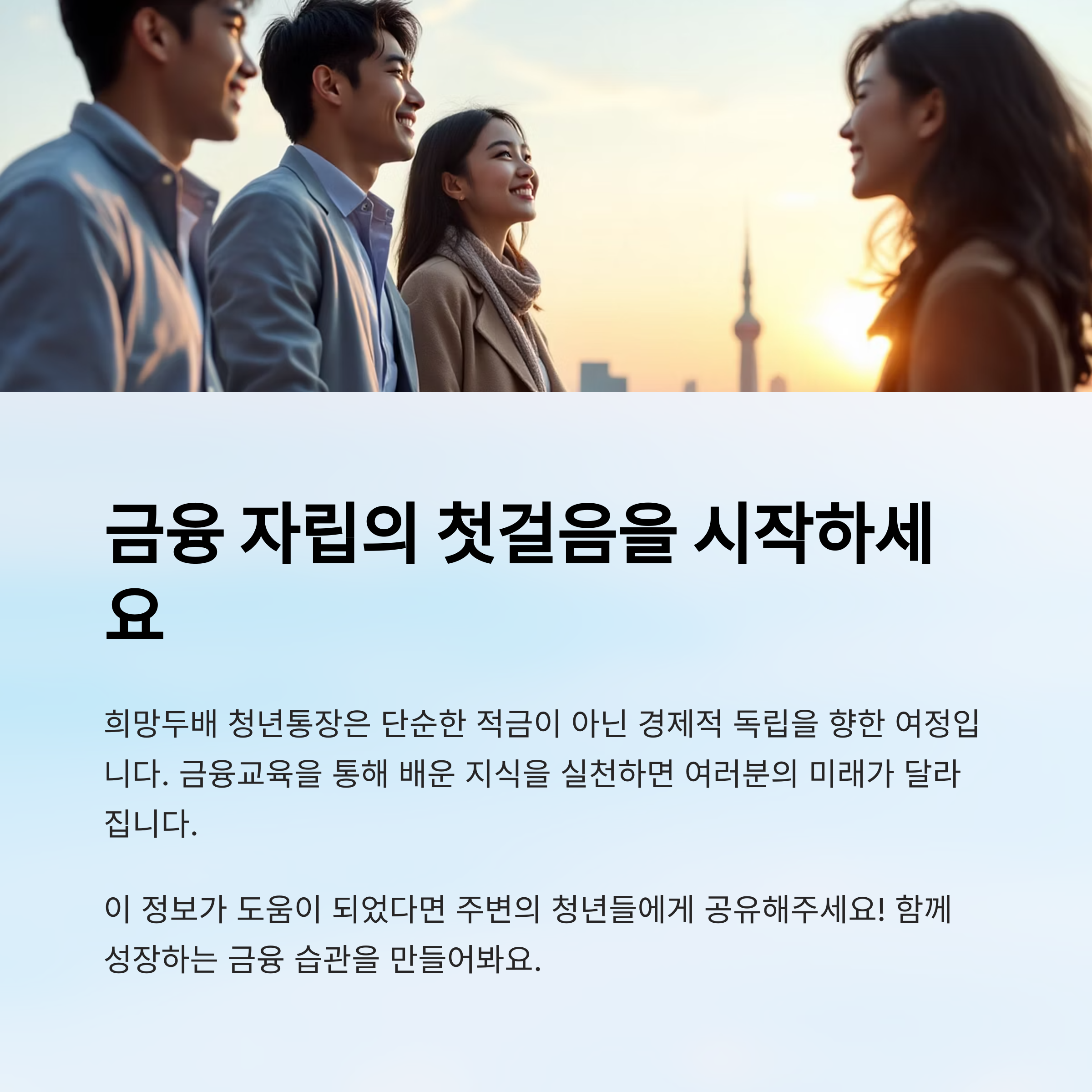 그리고 무엇보다 중요한 건 ‘재정 자립’이라는 마인드를 갖게 된다는 점이에요. 내 돈을 내가 관리하고, 내 미래를 스스로 준비한다는 태도는 청년들에게 가장 큰 자산이 돼요. 단기 목표부터 장기 재무 계획까지 세우게 되죠.