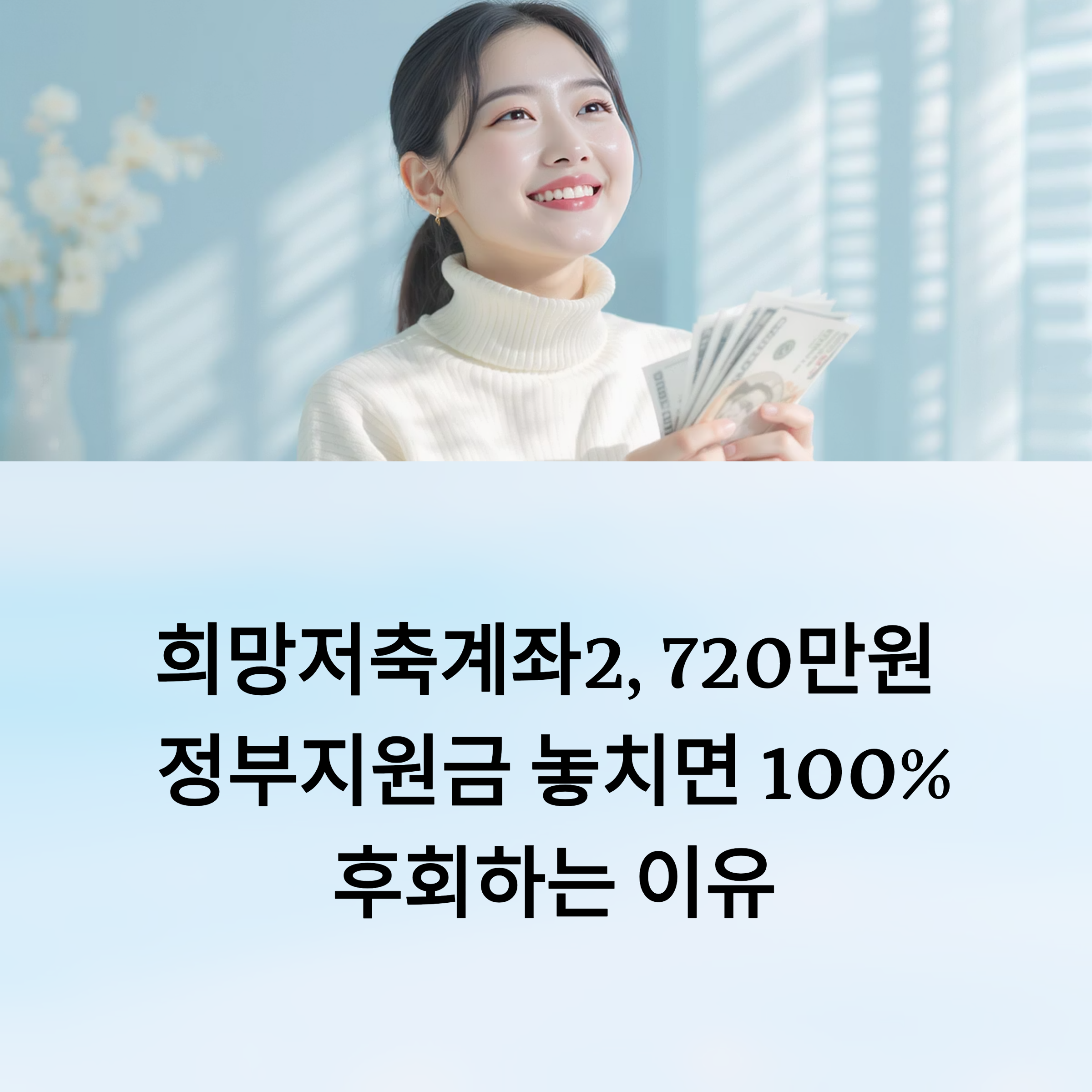 3년 동안 매달 10만원만 저축하면 최대 720만원의 정부지원금을 받을 수 있는 제도, 희망저축계좌2! 지금 신청하지 않으면 올해도 그냥 놓치게 될 수 있어요. 특히 2025년 10월 신청 기간은 정말 금방 지나가버리니 더 이상 미루지 마세요!