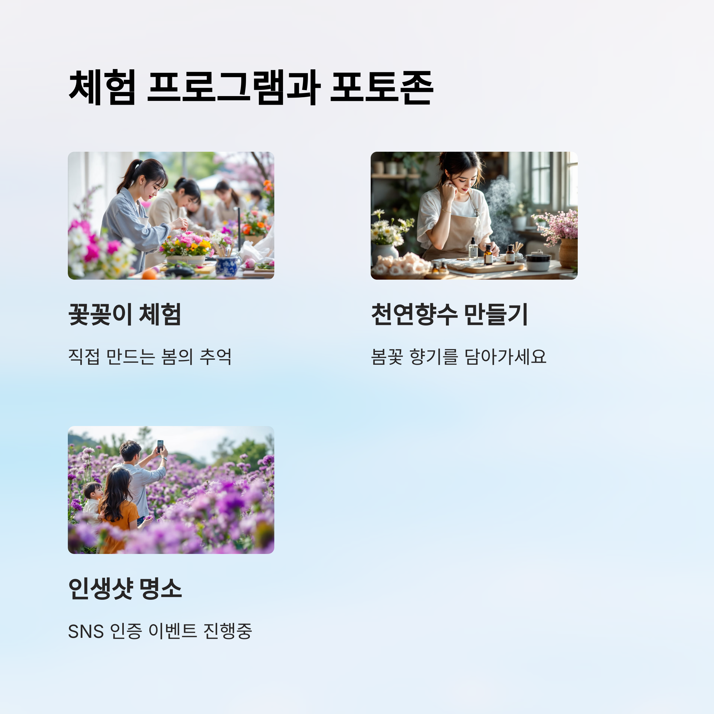 | 자연 산책 | 테마별 꽃길 따라 걷는 코스 |