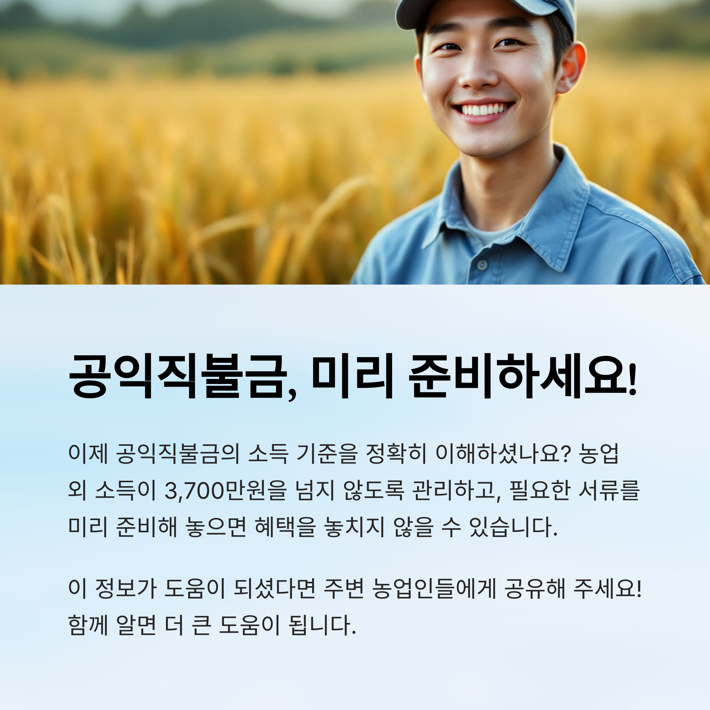 농업인들이 안정적으로 농사를 지을 수 있도록 정부에서는 공익직불금을 지원하고 있어요. 하지만 모든 농업인이 받을 수 있는 건 아니에요. 특히 농업 외 소득이 많으면 지원 대상에서 제외될 수도 있답니다.