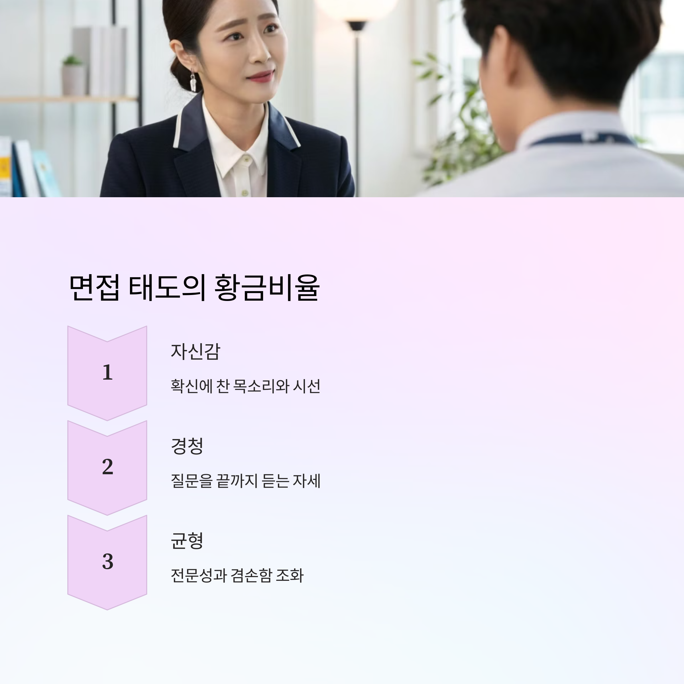 | 말투 & 경청 | 차분하고 명확한 말투, 고개 끄덕임 | 말 끊기, 부정적인 어투 |