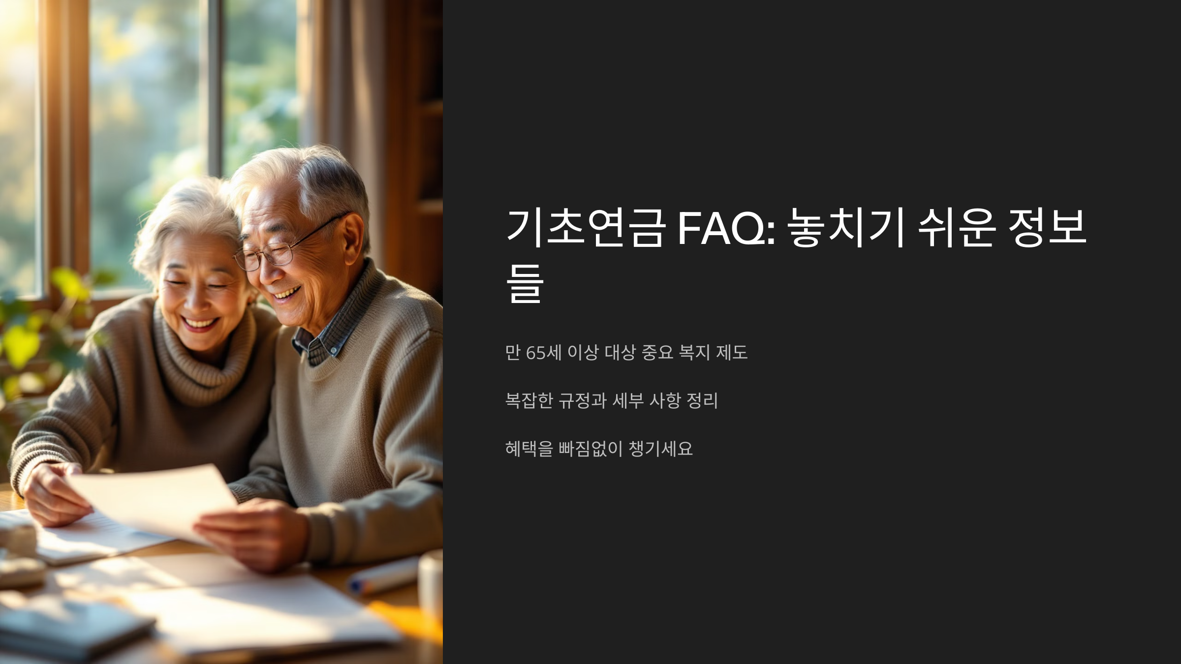 기초연금은 만 65세 이상이라면 꼭 알아야 할 중요한 복지 제도입니다. 하지만 막상 신청하거나 준비할 때 복잡한 규정과 세부 사항 때문에 많은 분들이 궁금증을 느끼거나, 놓치기 쉬운 정보를 그냥 지나치곤 하죠.