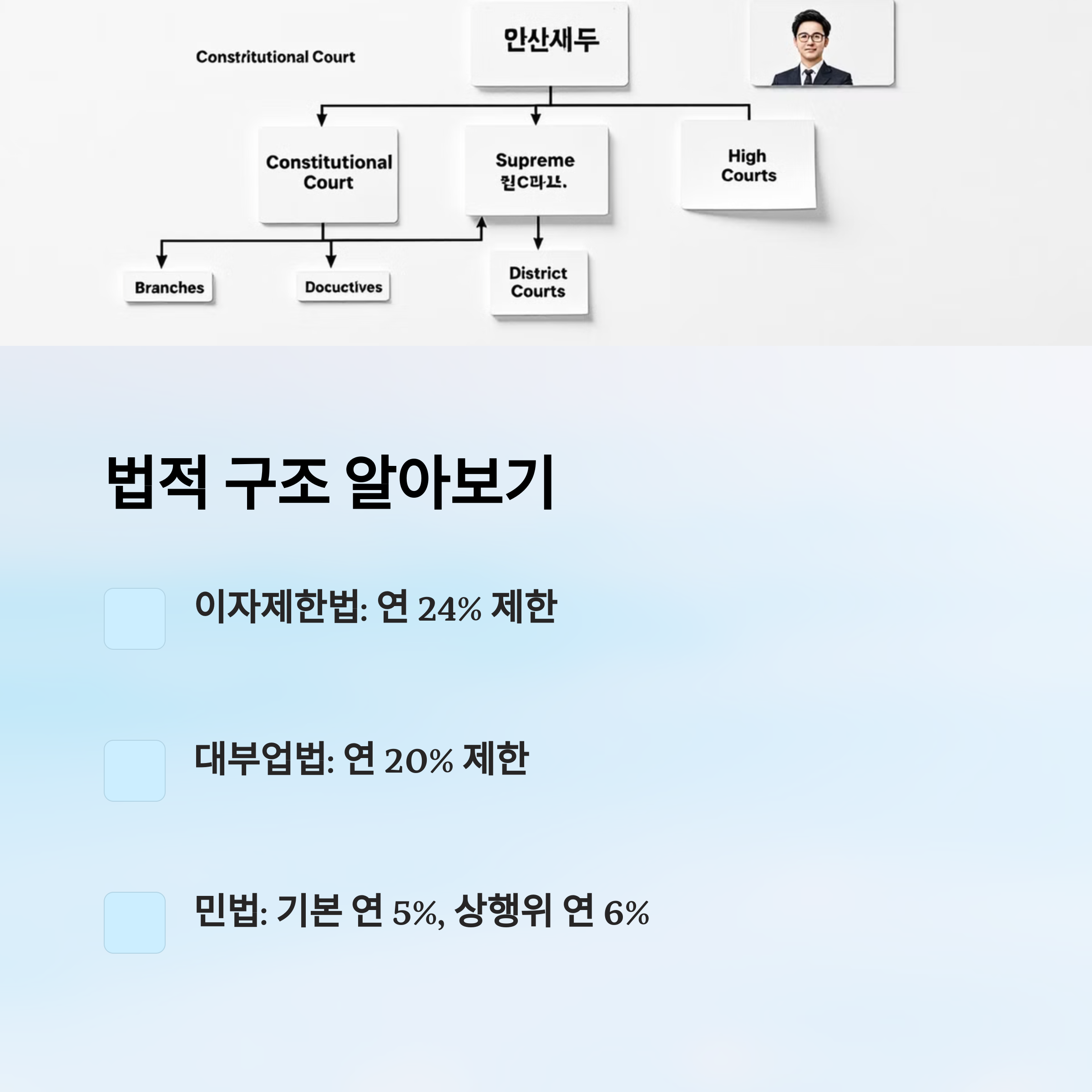 그럼 다음은 법정 이자율이 어떤 법 구조 속에서 운영되고 있는지 살펴볼게요. 💼