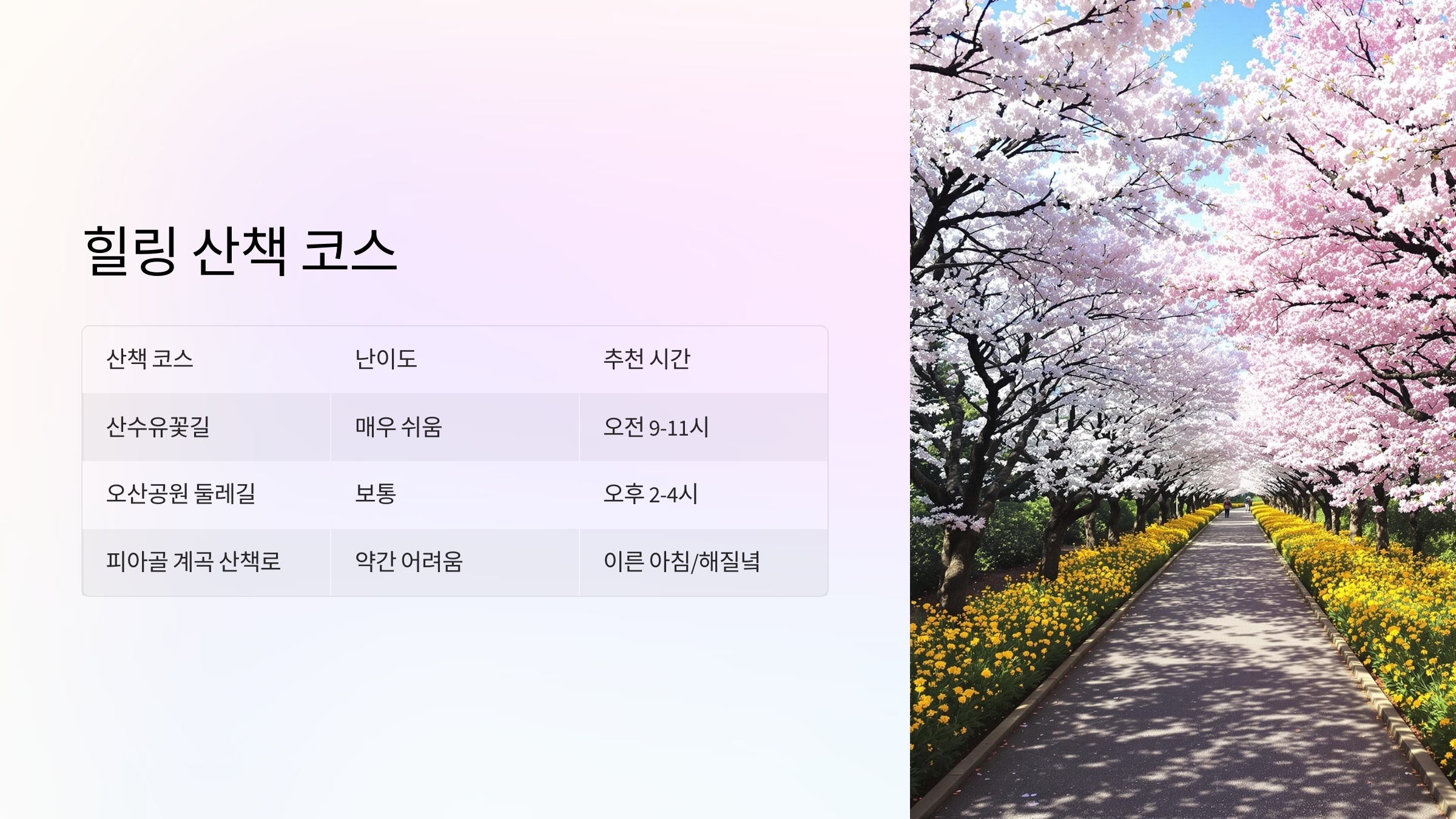 🌼 힐링 산책 코스 & 추천 시간