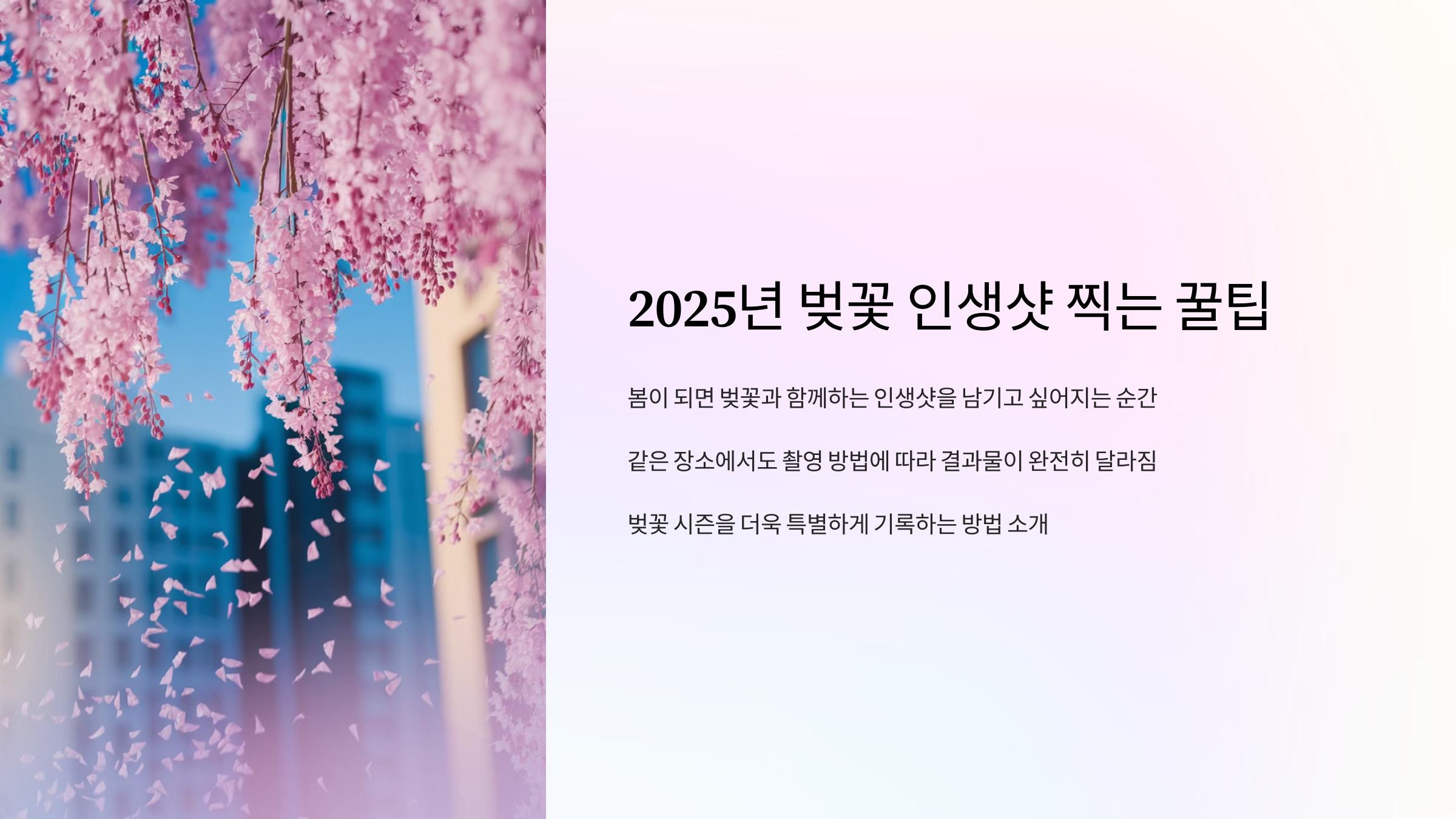 봄이 되면 벚꽃과 함께하는 인생샷을 남기고 싶어지는 순간이 많아요. 하지만 같은 장소에서도 촬영 방법에 따라 결과물이 완전히 달라질 수 있어요! 📷