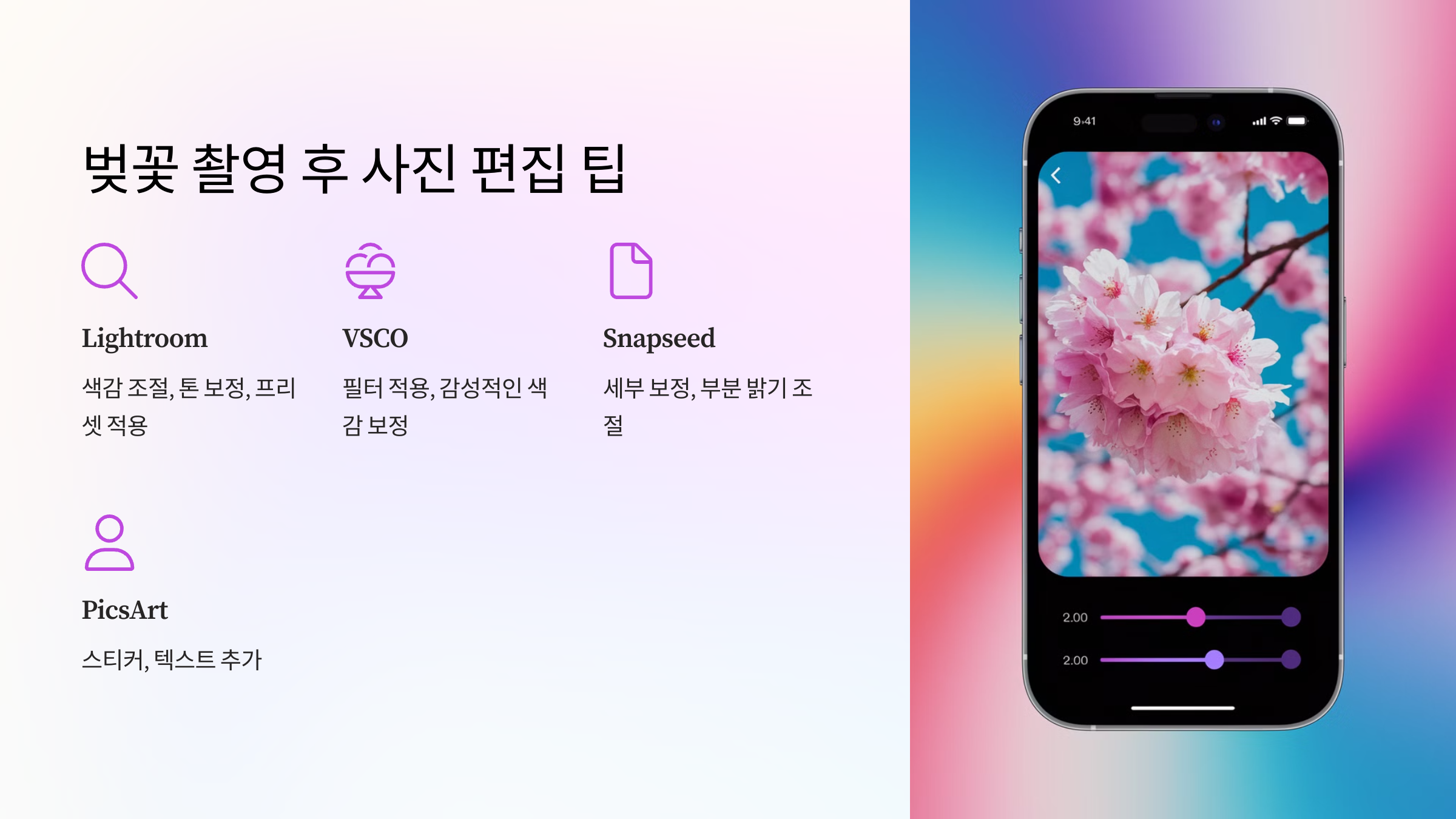 🎨 벚꽃 촬영 후 사진 편집 팁
