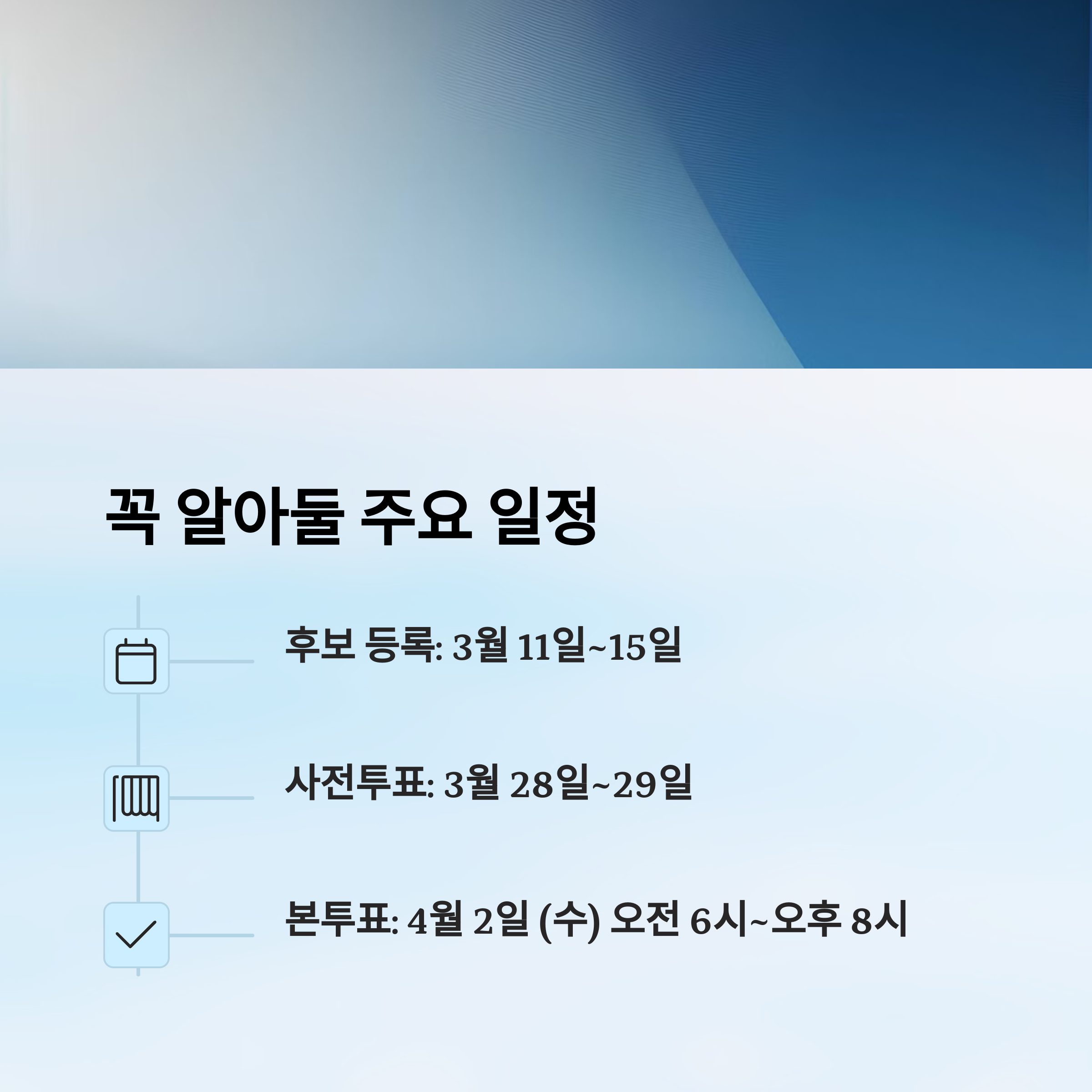 - 📌 사전투표: 3월 28일(금) ~ 3월 29일(토)