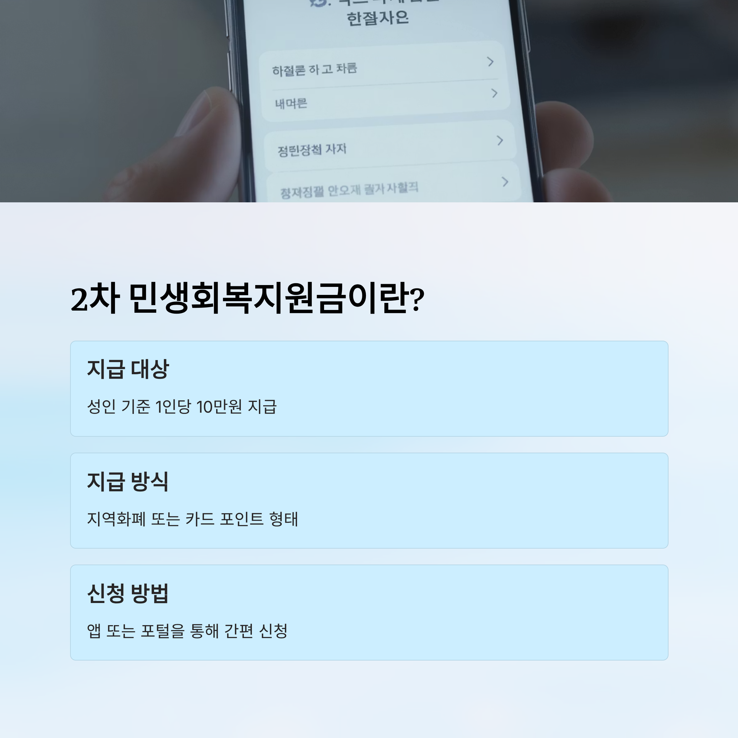 2차 민생회복지원금은 2025년 정부가 경기 회복을 위해 전국민에게 지급하는 지원금이에요. 1차 지원금의 효과와 국민 만족도를 분석한 뒤, 이번에는 더욱 확대된 혜택과 범위로 돌아왔죠.