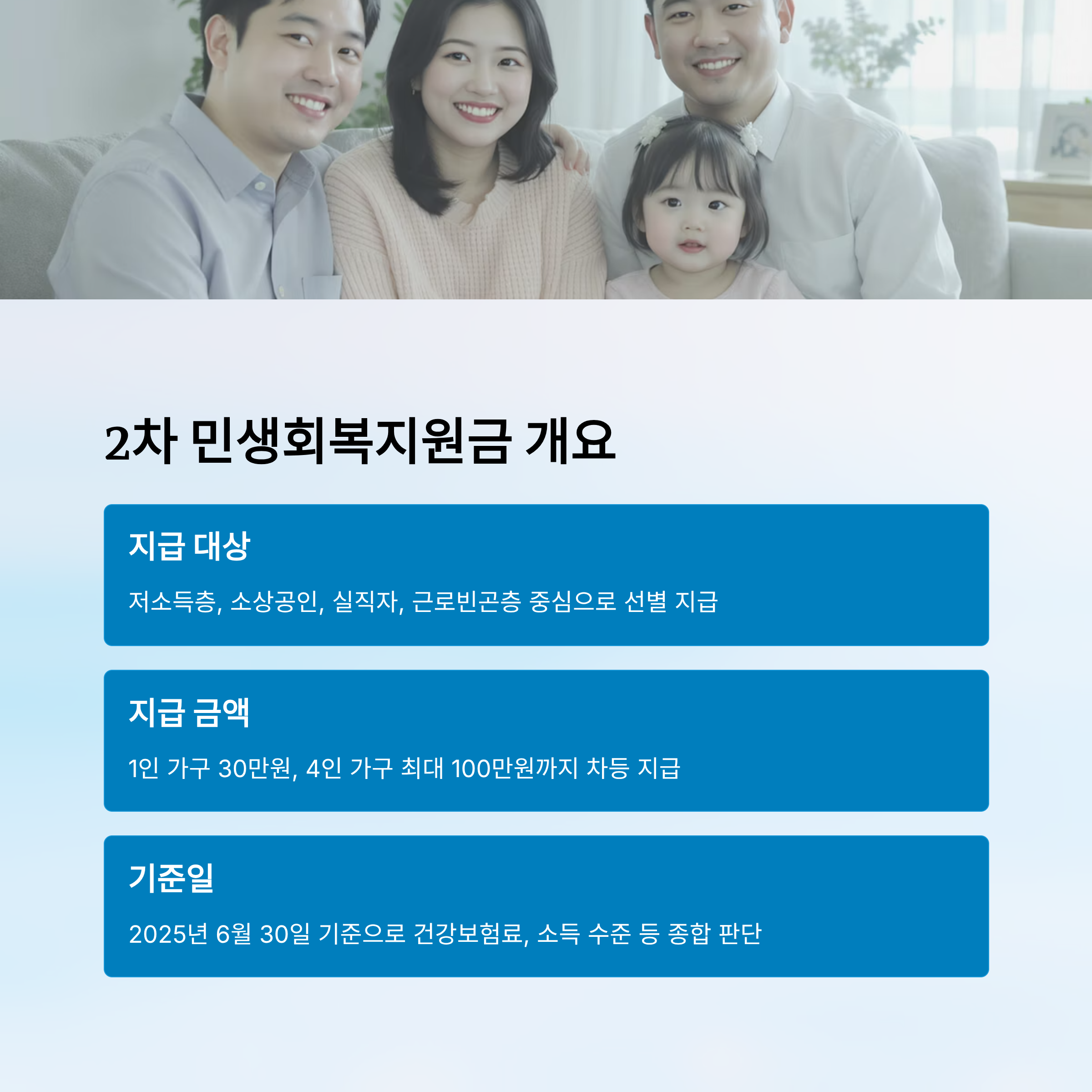 2차 민생회복지원금은 2025년 경제적 타격을 입은 국민을 대상으로 정부가 지원하는 직접 현금성 지원 제도예요. 특히 저소득층, 소상공인, 실직자, 근로빈곤층 등을 중심으로 한층 더 강화된 형태로 도입되었어요. 지난 1차 지원금과 달리, 세부 기준이 조금 더 촘촘해져서 누락되는 사례도 많아졌죠.