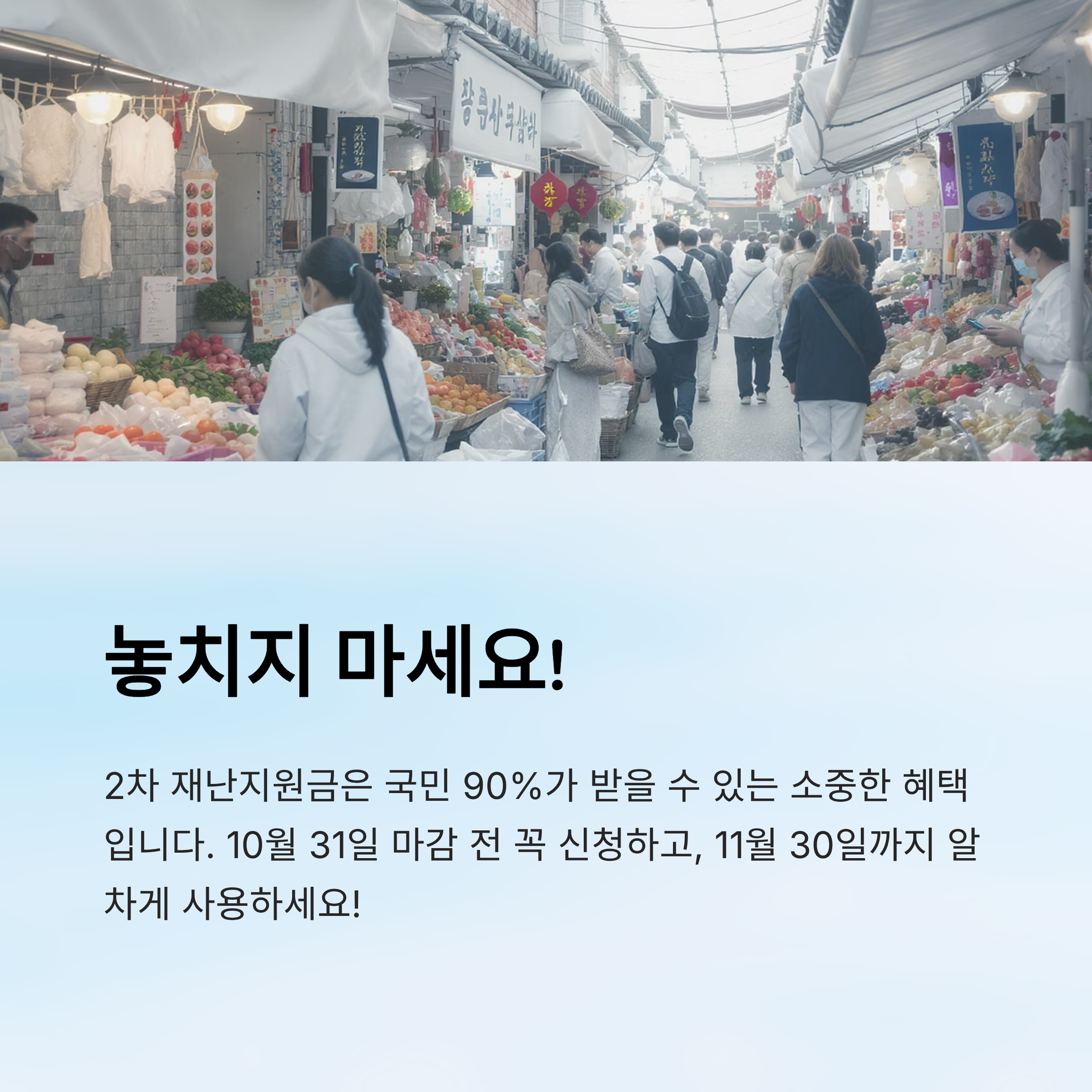 정리하면, 2차 재난지원금은 1차와 달리 선별적 지원 방식이 도입됐고, 지역 사용처가 더 다양해졌다는 점에서 차별성이 있어요. 국민 대다수가 실제 생활 속에서 체감할 수 있도록 짜여진 점이 돋보인다고 할 수 있답니다. 🎯
