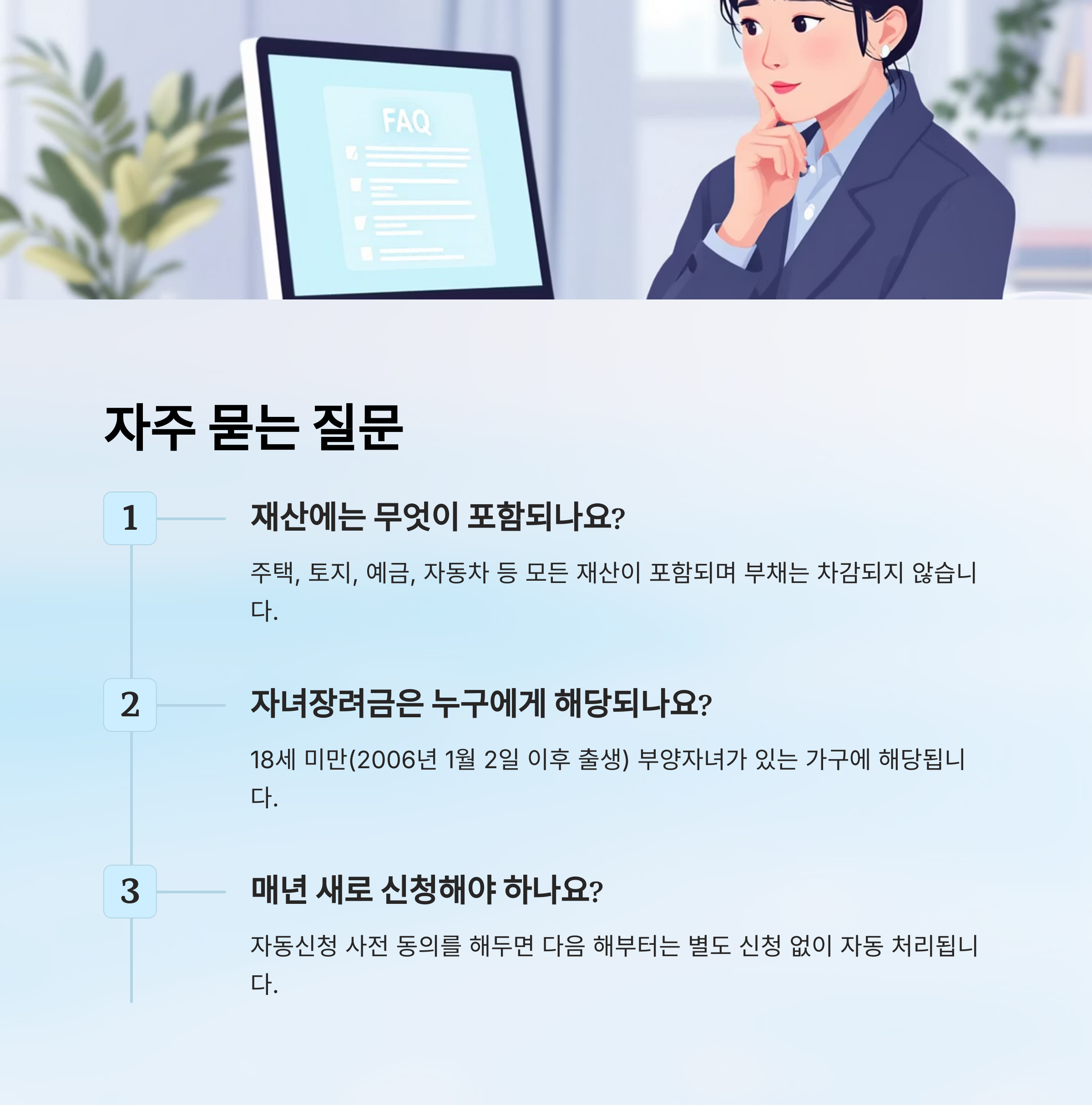 A6. 기본적으로는 매년 신청해야 하지만, 자동신청 사전 동의를 해두면 다음 해부터는 별도 신청 없이 자동으로 처리돼요. 😎