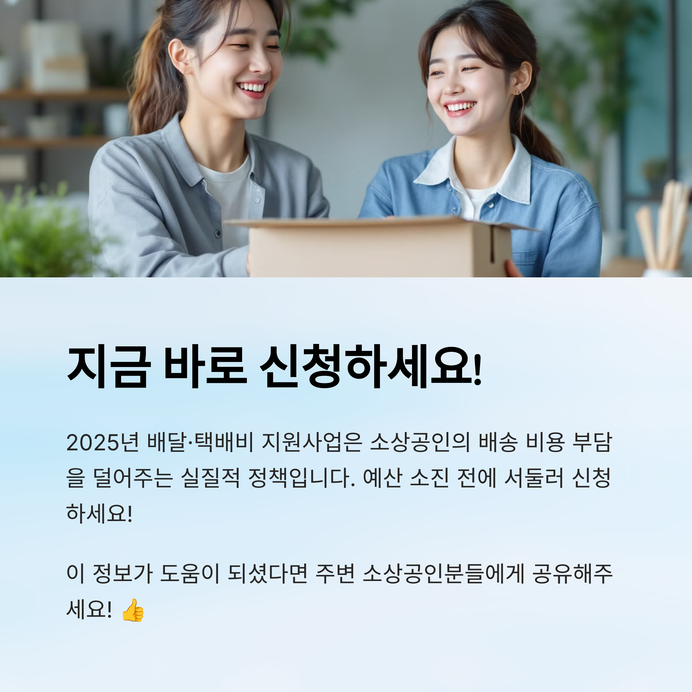 2025년 소상공인을 위한 배달·택배비 지원사업이 다시 시작됐어요! 최대 30만 원까지 지원받을 수 있고, 특히 온라인 쇼핑몰이나 음식점처럼 배달·택배를 이용하는 소상공인이라면 놓치면 아까운 사업이에요. 🛵📦