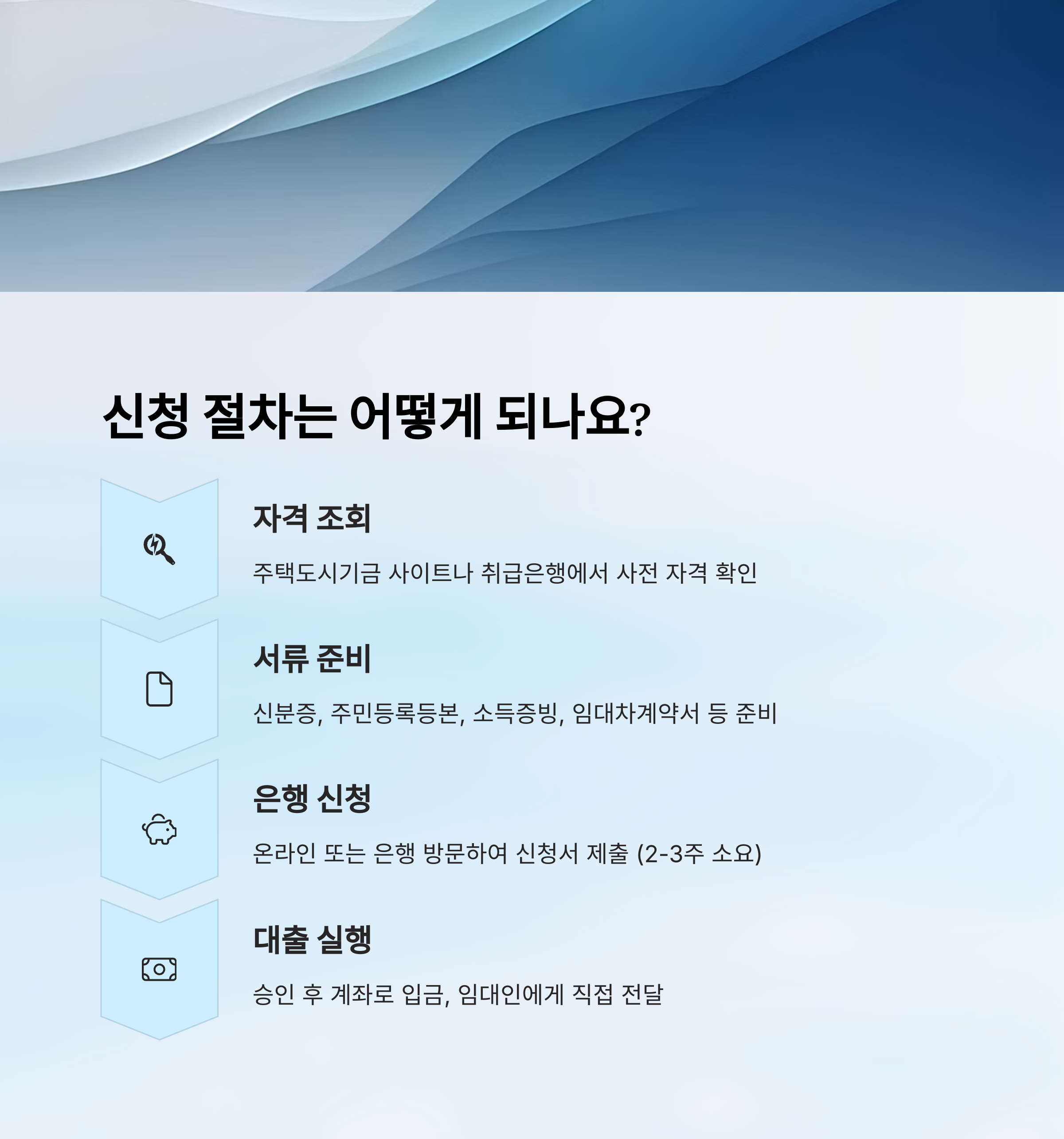자격 조건이 확인되면, 신청서 작성과 함께 필요한 서류를 준비해서 제출해야 해요. 이후 보증기관에서 심사를 진행하고, 승인되면 임차계약서에 근거해 보증금이 지급돼요. 온라인 신청은 '버팀목 전세자금대출 시스템'에서 가장 편리하게 이용 가능하답니다.
