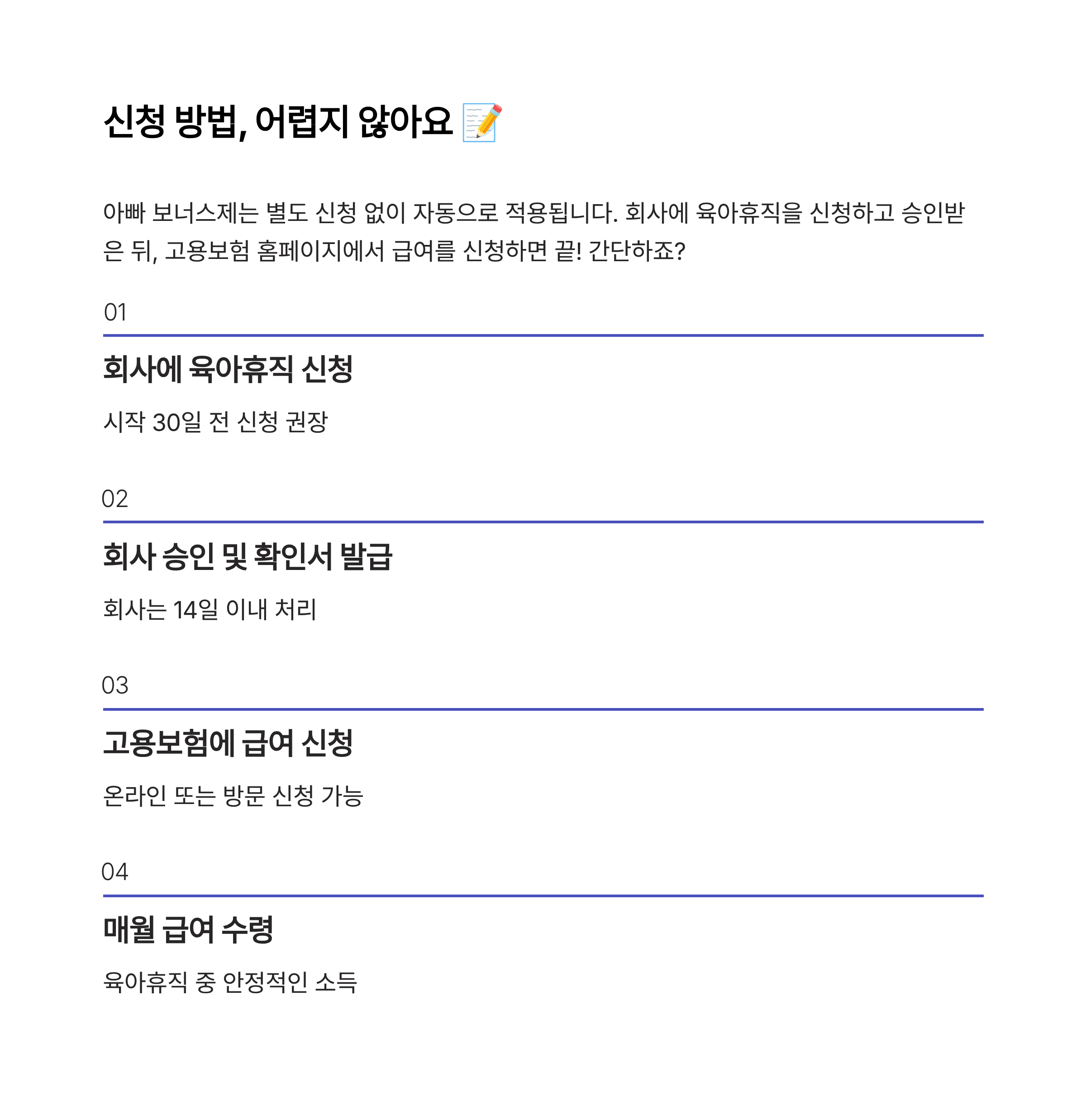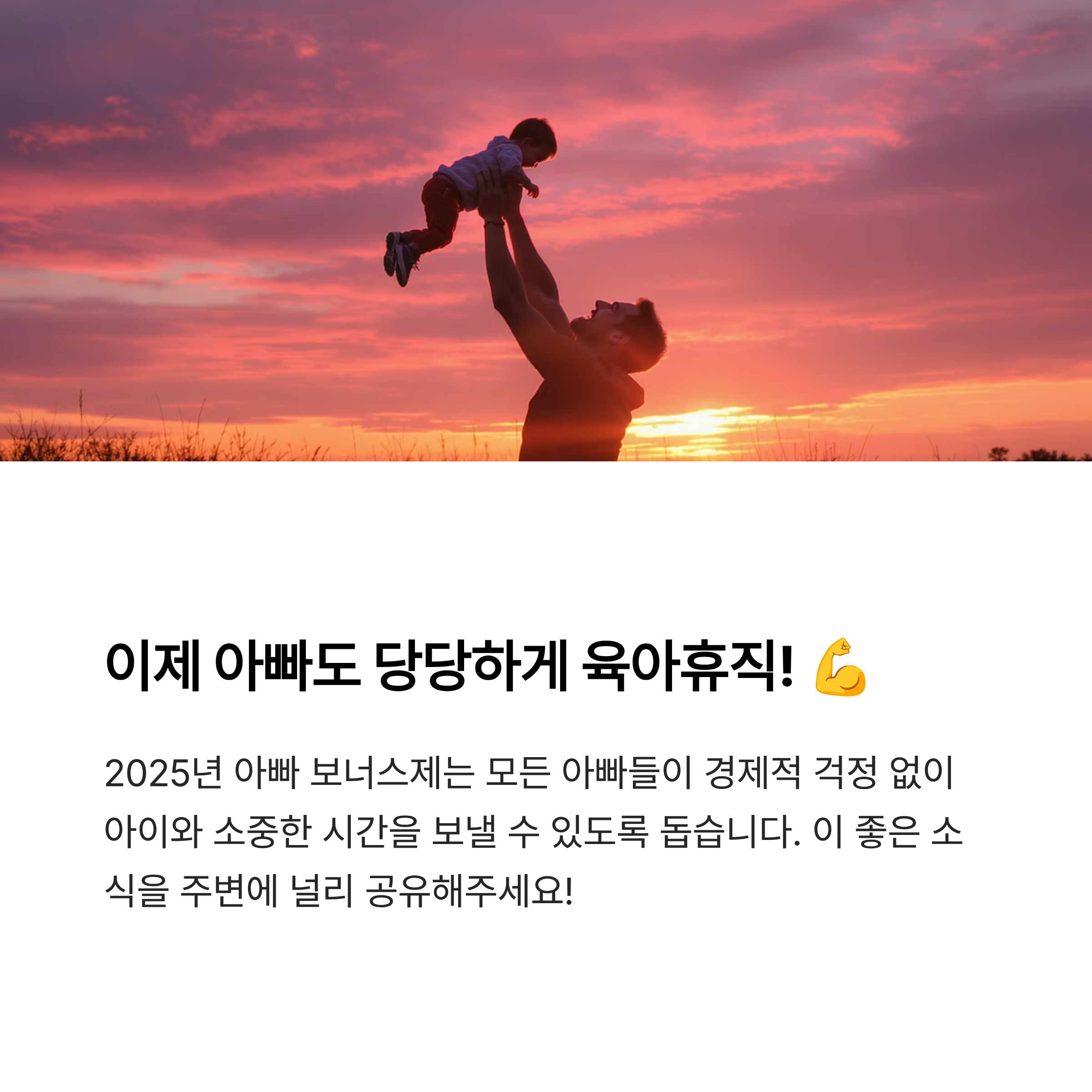 실제로 많은 아빠들이 '돈 때문에 육아휴직은 꿈도 못 꾼다'고 말하곤 했는데요, 이제는 이 제도를 통해 안심하고 아이와 함께하는 시간을 가질 수 있게 된 거예요. 💖