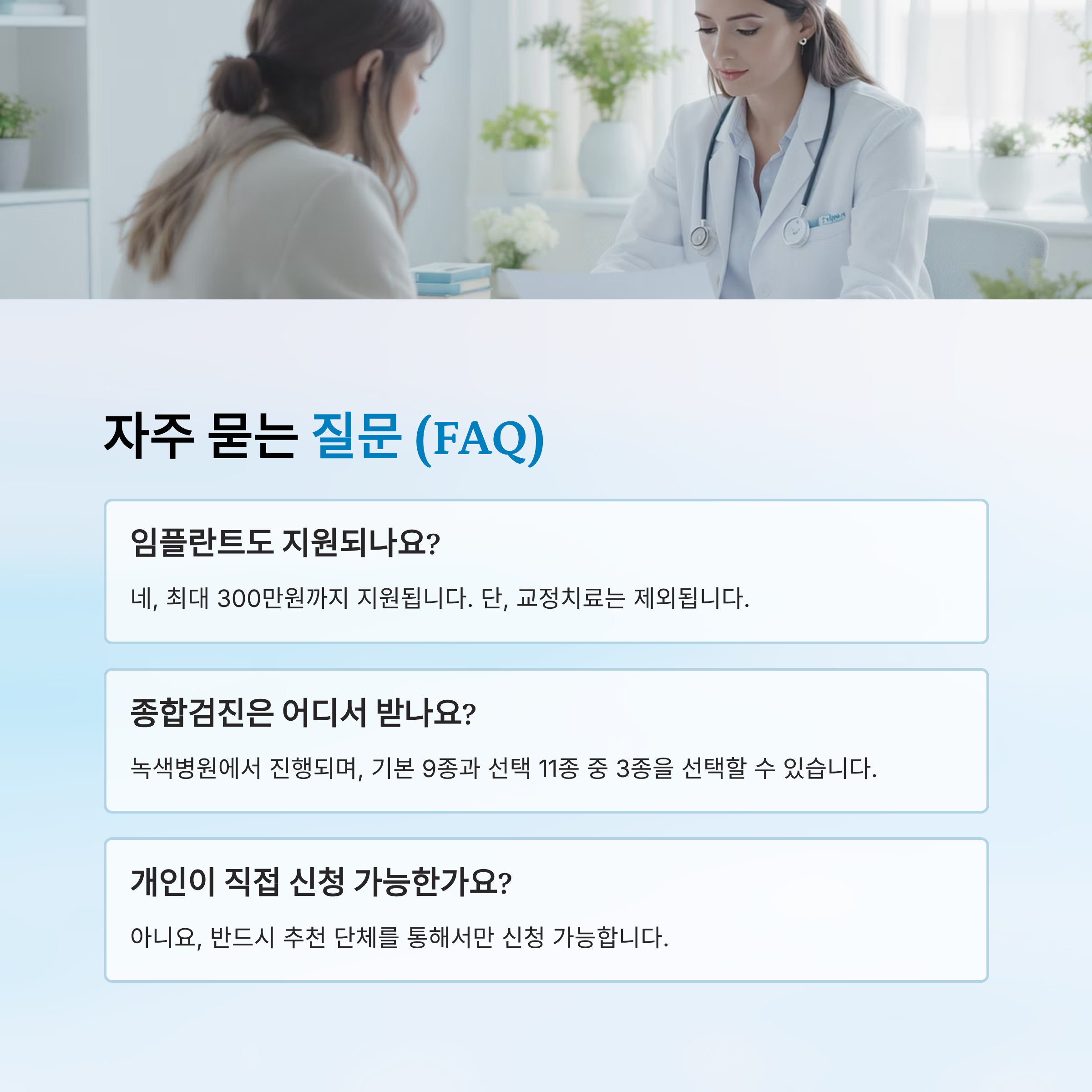 정부뿐 아니라 여러 공익재단과 의료단체가 함께 협력해 운영되는 것도 큰 특징이에요. 예를 들어 ‘건강사회를 위한 치과의사회’ 같은 단체가 참여하면서 치과 진료가 주요 지원 항목으로 자리 잡았어요. 또 녹색병원이 종합검진을 담당하게 되면서 제도 운영의 전문성과 신뢰성이 더욱 높아졌죠.