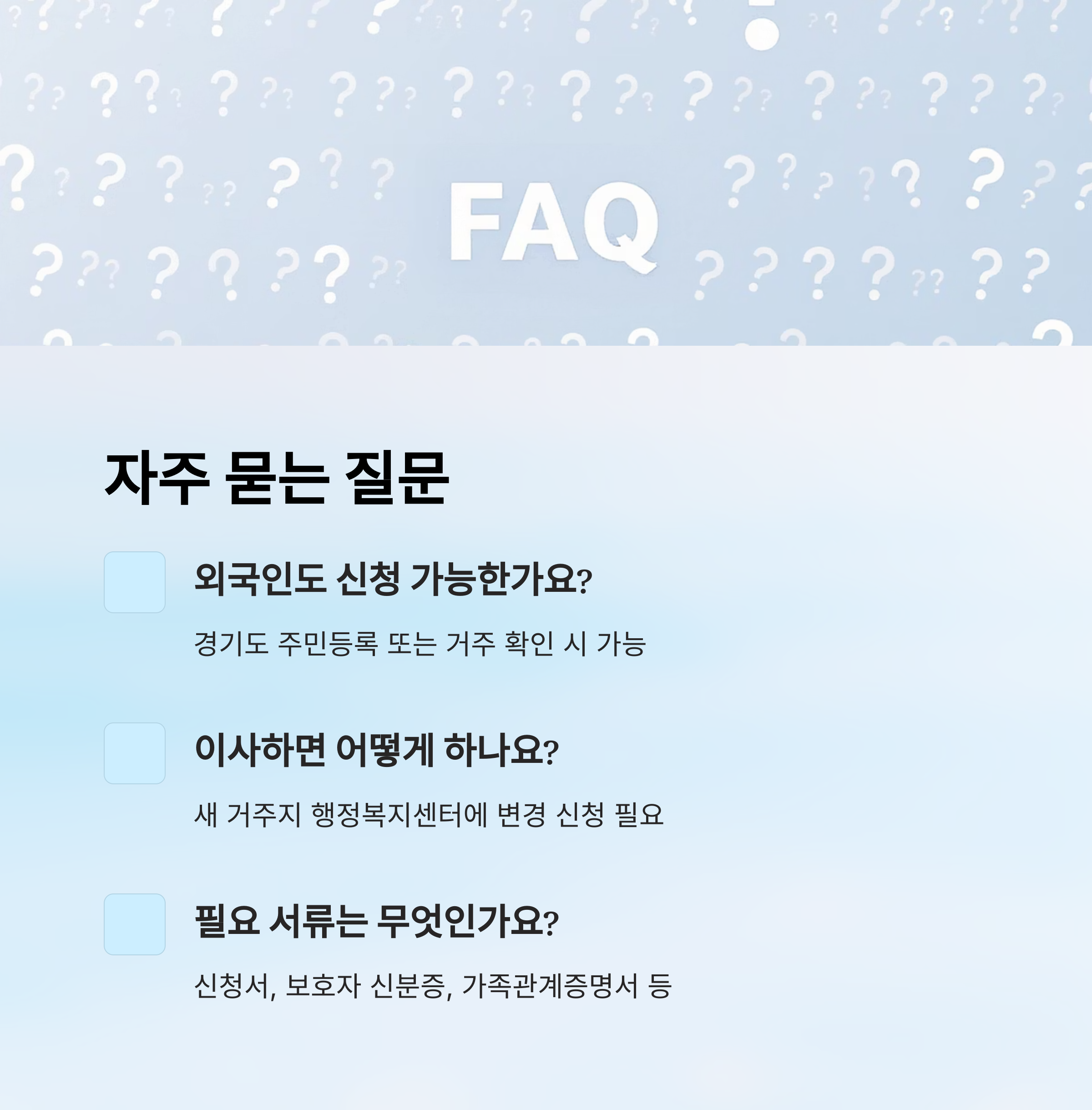 A2. 네! 경기도에 주민등록이 되어 있거나 거주 사실이 확인되면 신청할 수 있어요.