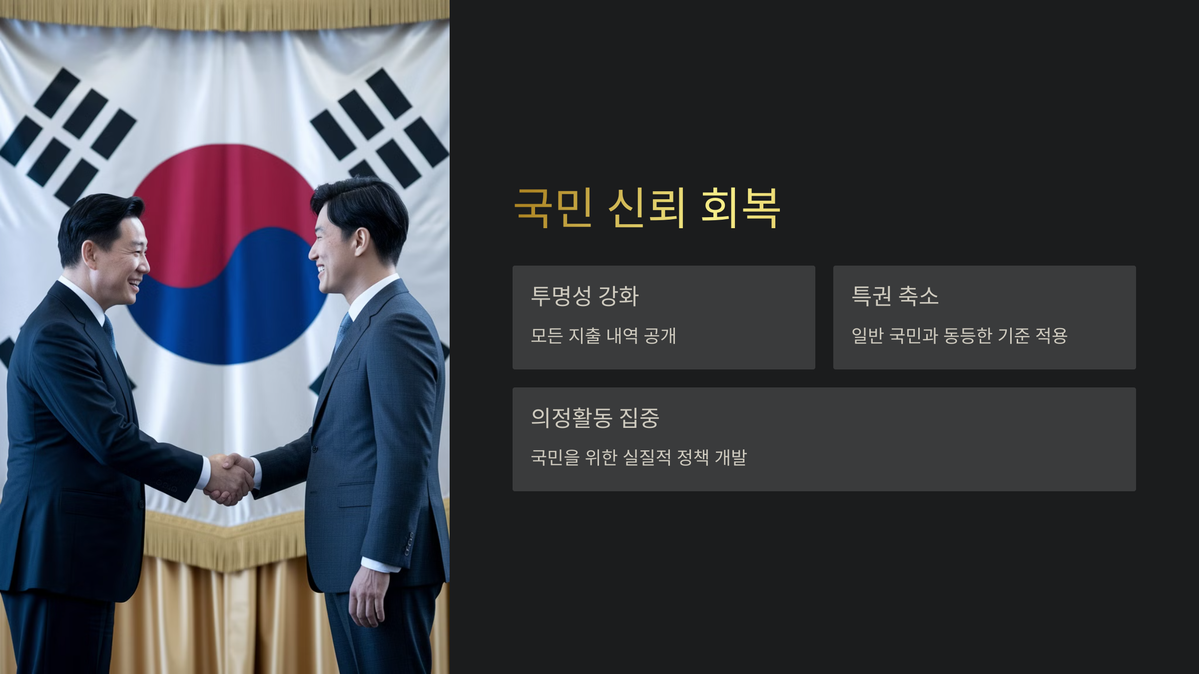 궁극적으로는 국민 신뢰를 얻기 위해 국회의원들이 특권을 줄이고, 의정활동에 집중할 수 있는 환경을 조성하는 것이 가장 중요해요.