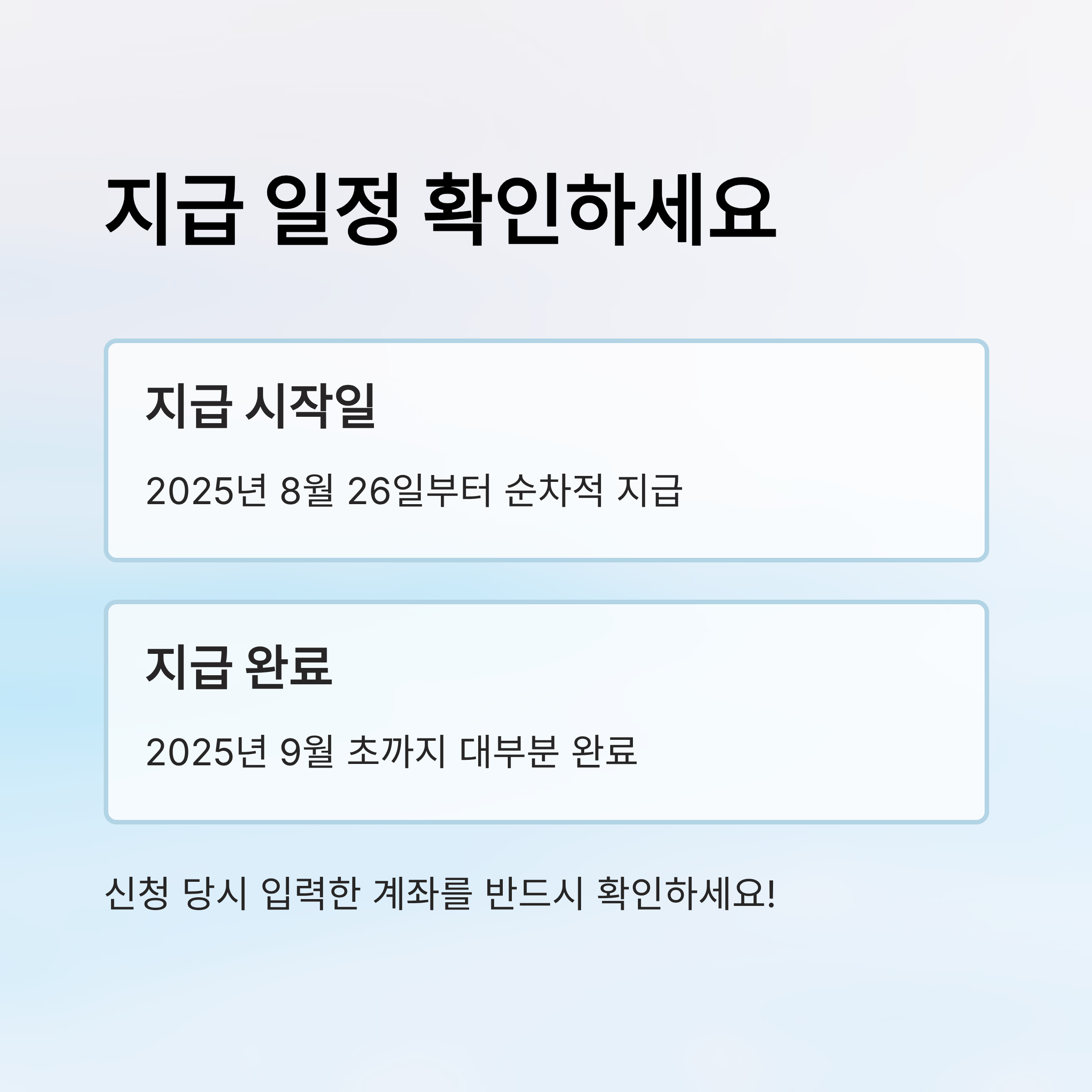 | 4단계 | 지급 안내 및 입금 | 8월 26일 이후 | 계좌 확인, 문자 통보 |