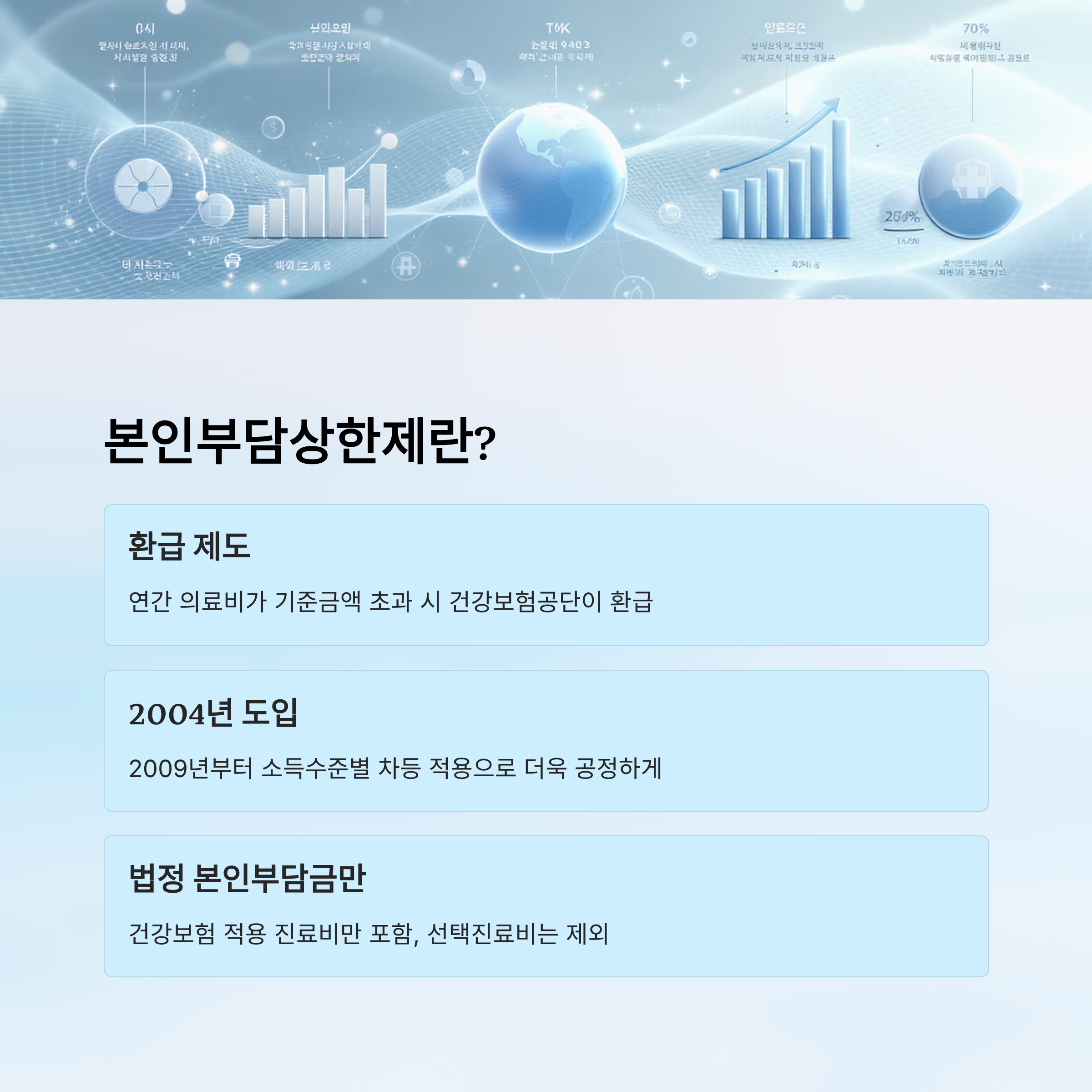 본인부담상한제는 국민건강보험 가입자가 병원에서 진료를 받고 부담한 의료비가 연간 기준금액을 초과할 경우, 초과된 금액을 건강보험공단에서 환급해주는 제도예요. 쉽게 말해, 병원비가 너무 많이 나왔을 때 일정 수준 이상은 돌려준다는 것이죠. 😮