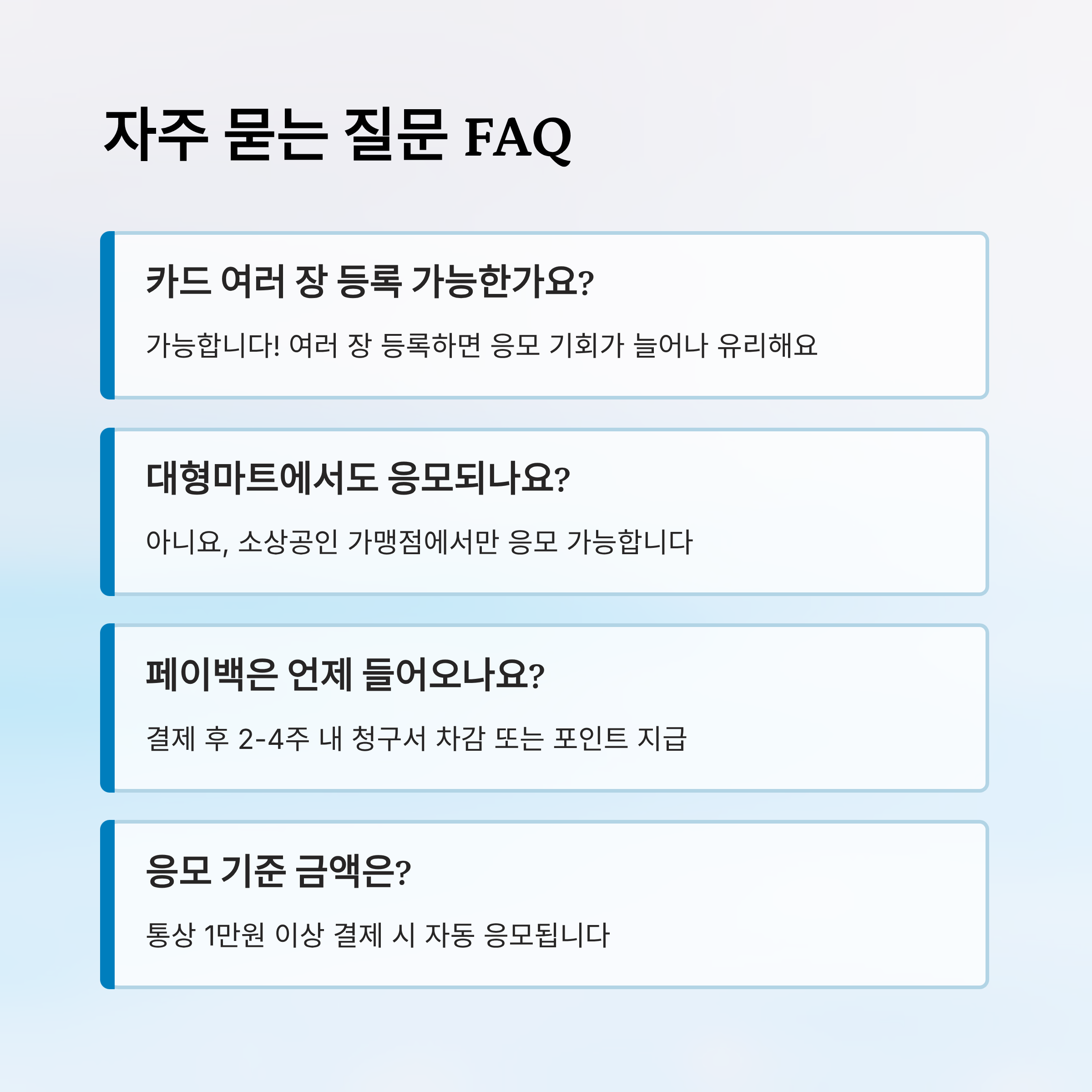 📌 면책조항: 본 글은 정부 공식자료, 카드사 공지사항 등을 기반으로 작성되었으며, 실제 이벤트 조건은 카드사 및 중기부 정책에 따라 변동될 수 있어요. 정확한 정보는 반드시 공식 홈페이지를 통해 확인해주세요.