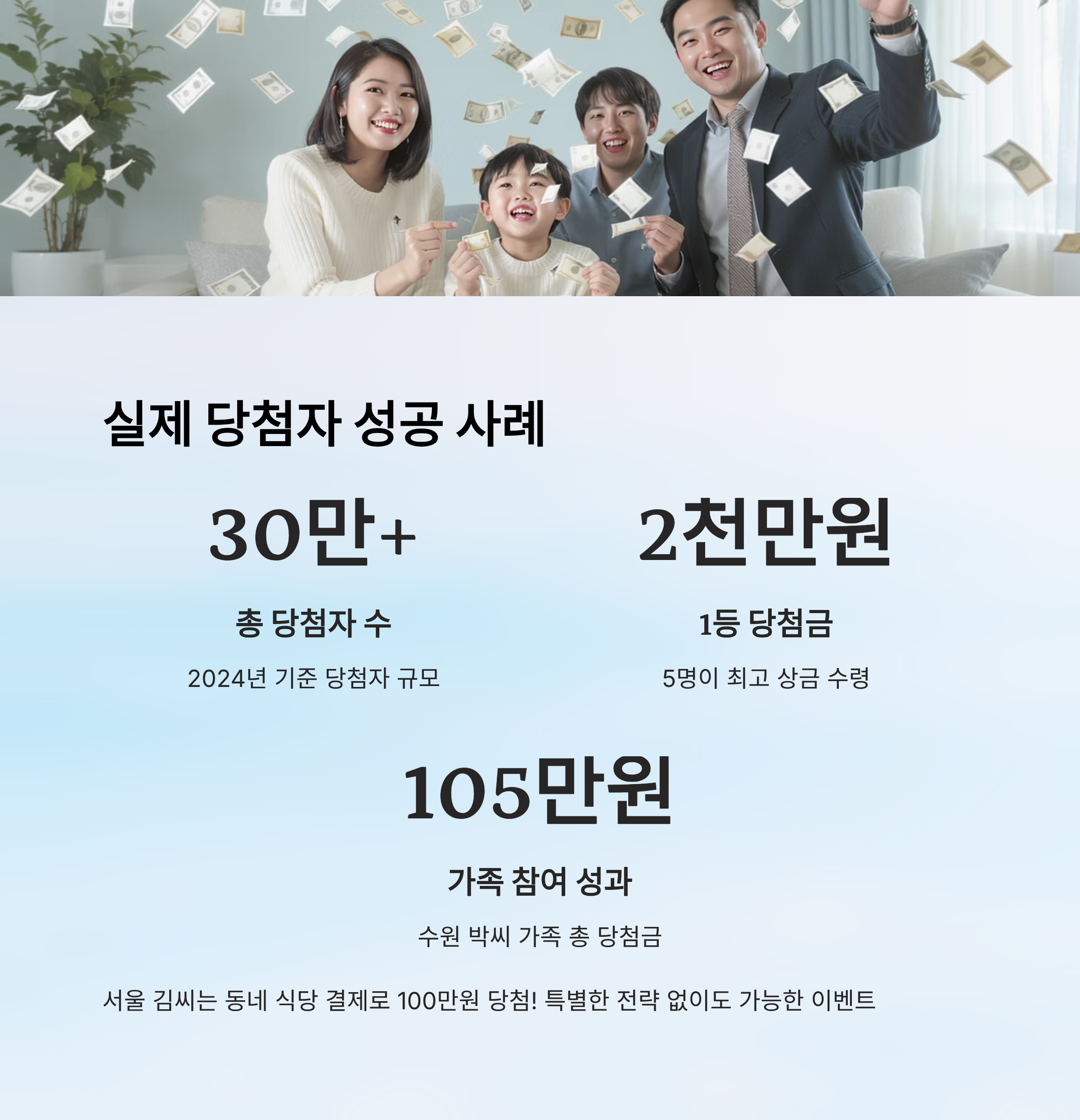또한 경기 수원에 사는 박OO 씨는 가족 4명이 카드 각각 등록해서 함께 참여했는데, 그중 둘이 당첨돼서 총 105만원을 수령했대요. 가족 단위 응모 전략이 꽤 효과적이라는 실증 사례죠.