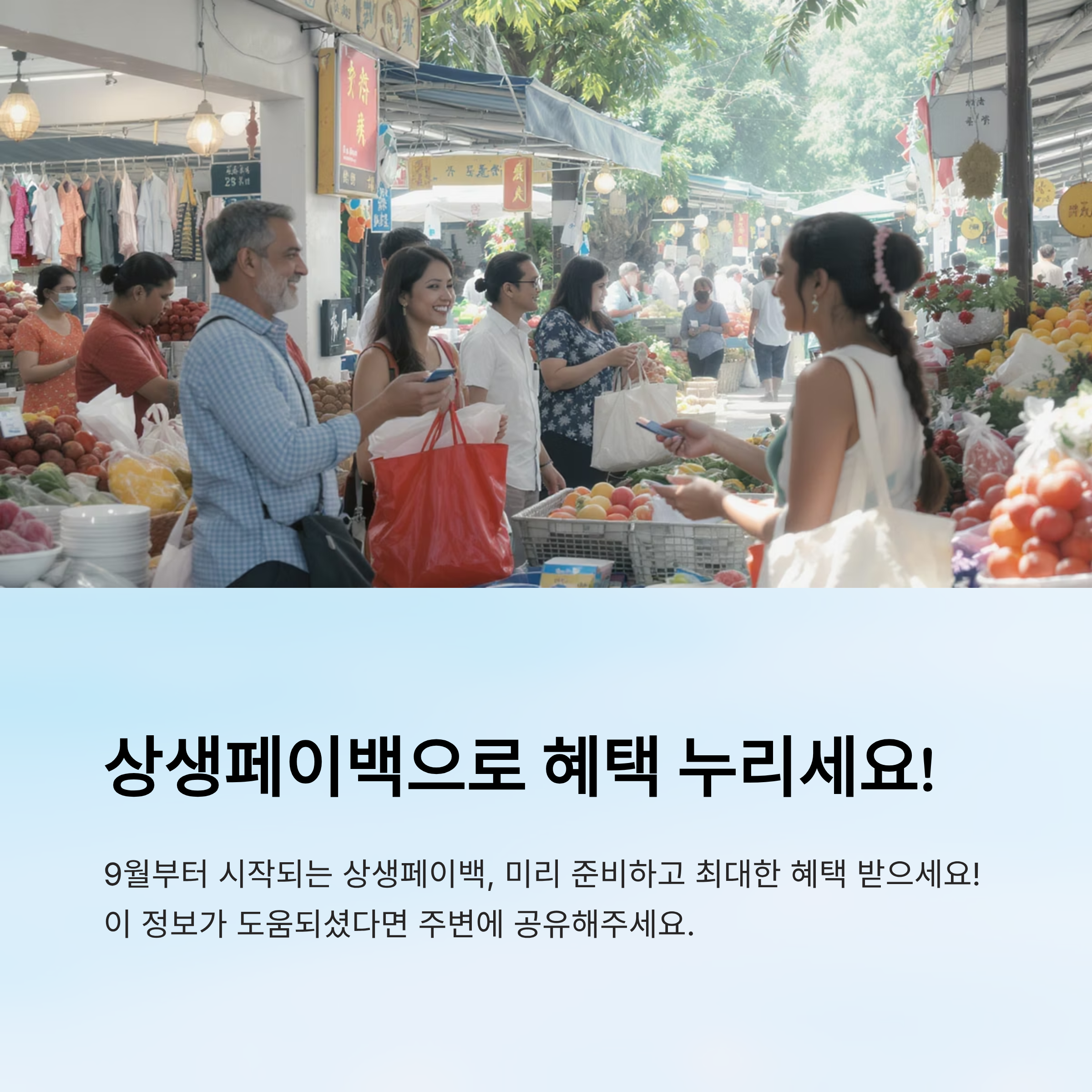 정리하자면, 상생페이백은 단순한 지원금 정책이 아니라, 소비와 상권을 동시에 살리는 새로운 실험이에요. 환급을 받기 위해 소비자가 더 많은 지출을 하고, 그 지출이 골목상권과 지역 상권으로 이어지게 유도하는 구조라는 점에서 의미가 커요. 이런 흐름은 경제 전반에 작은 파동처럼 퍼져 나가면서, 체감 경기에도 긍정적인 자극을 줄 수 있답니다 🚀