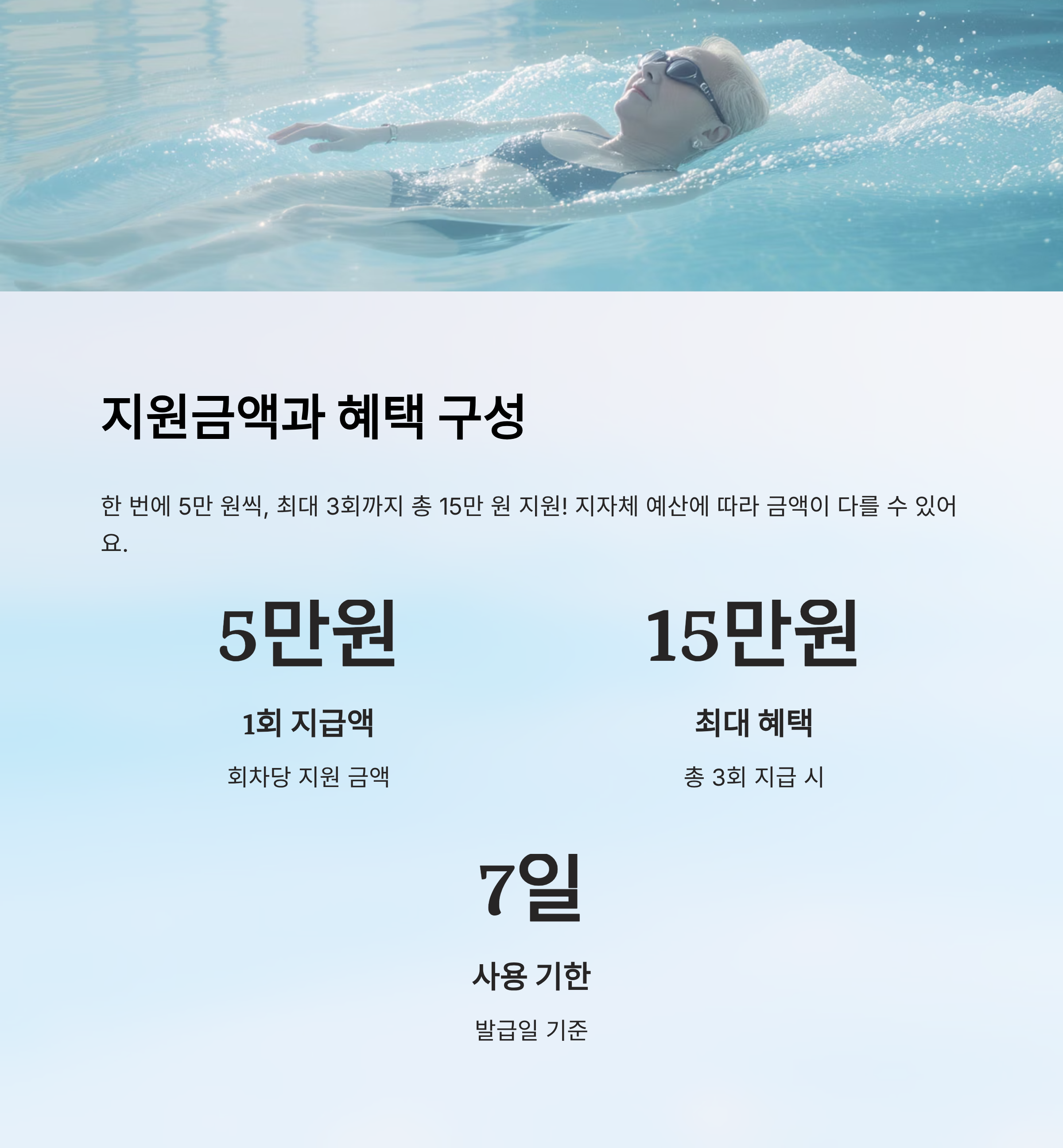 | 지급 금액 | 1회 5만 원, 최대 15만 원 |