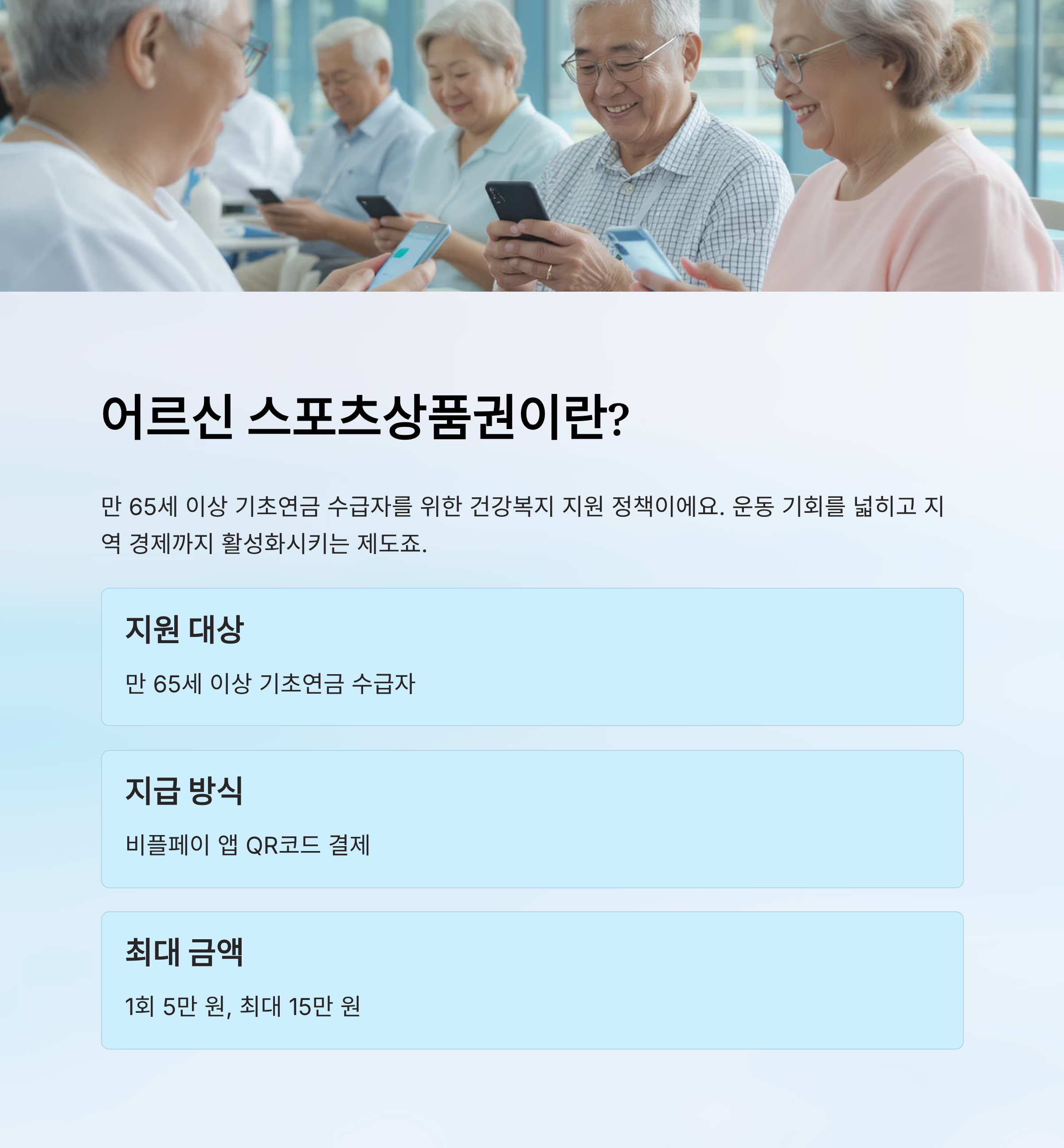 내가 생각했을 때 이 제도는 단순한 복지가 아니라, 어르신들이 운동을 통해 삶의 활력을 찾고, 지역 체육시설이 함께 성장할 수 있도록 돕는 사회적 투자라고 느껴져요.👴