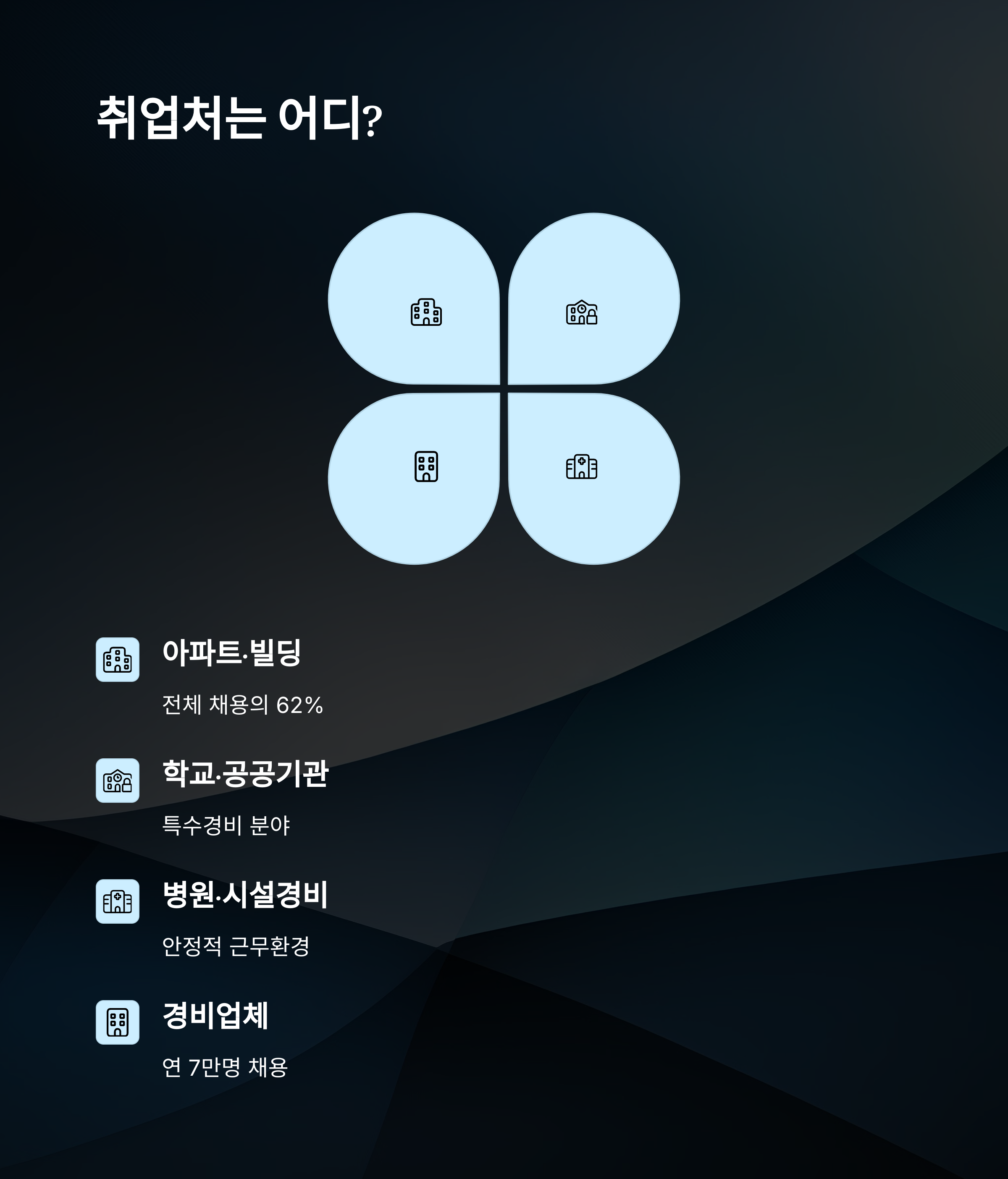 | 학교/관공서 | 청사 보안, 출입 통제 | 정규직 가능, 복지 양호 |