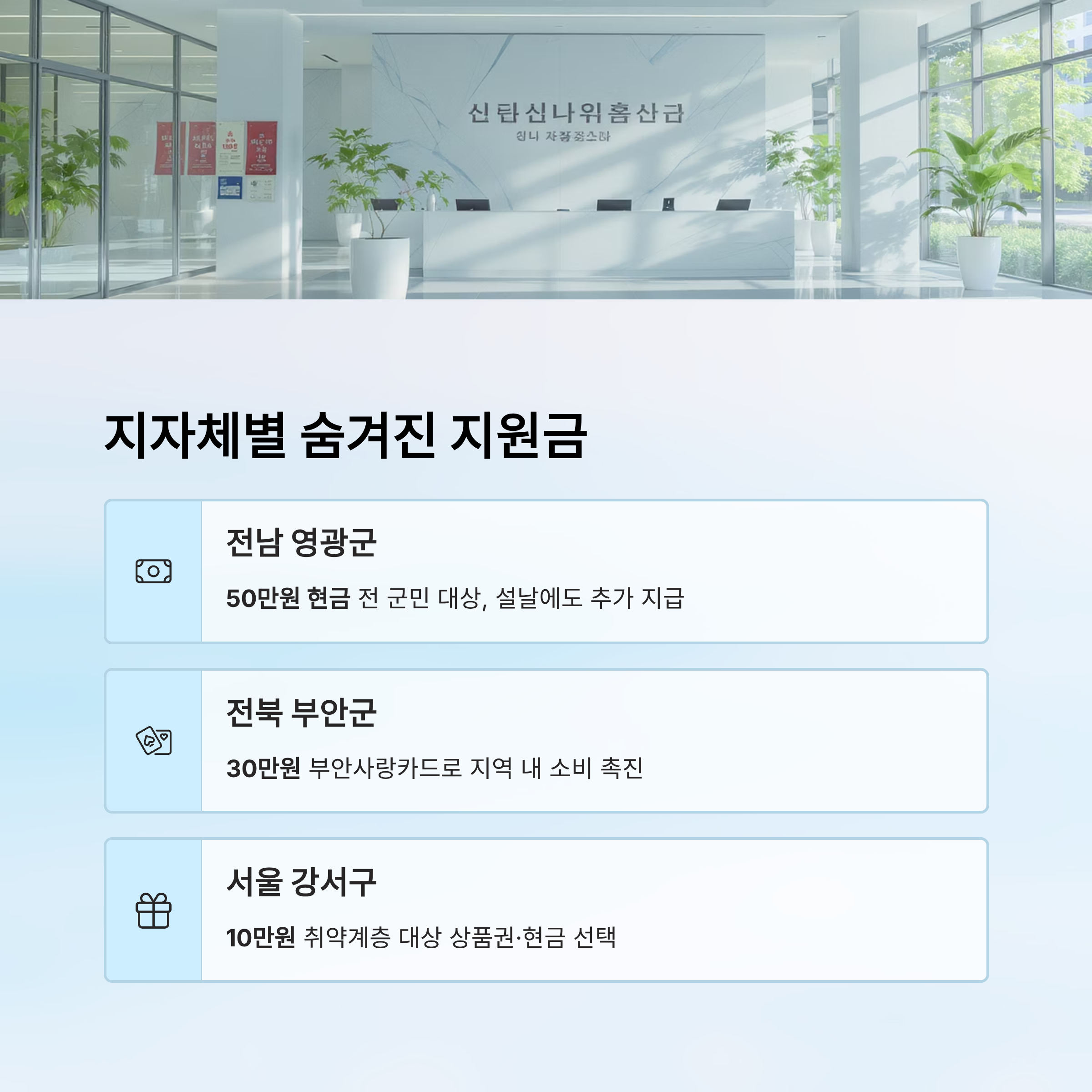 | 전남 영광군 | 50만 원 | 현금 | 전 군민 | 설날에도 추가 지급 |