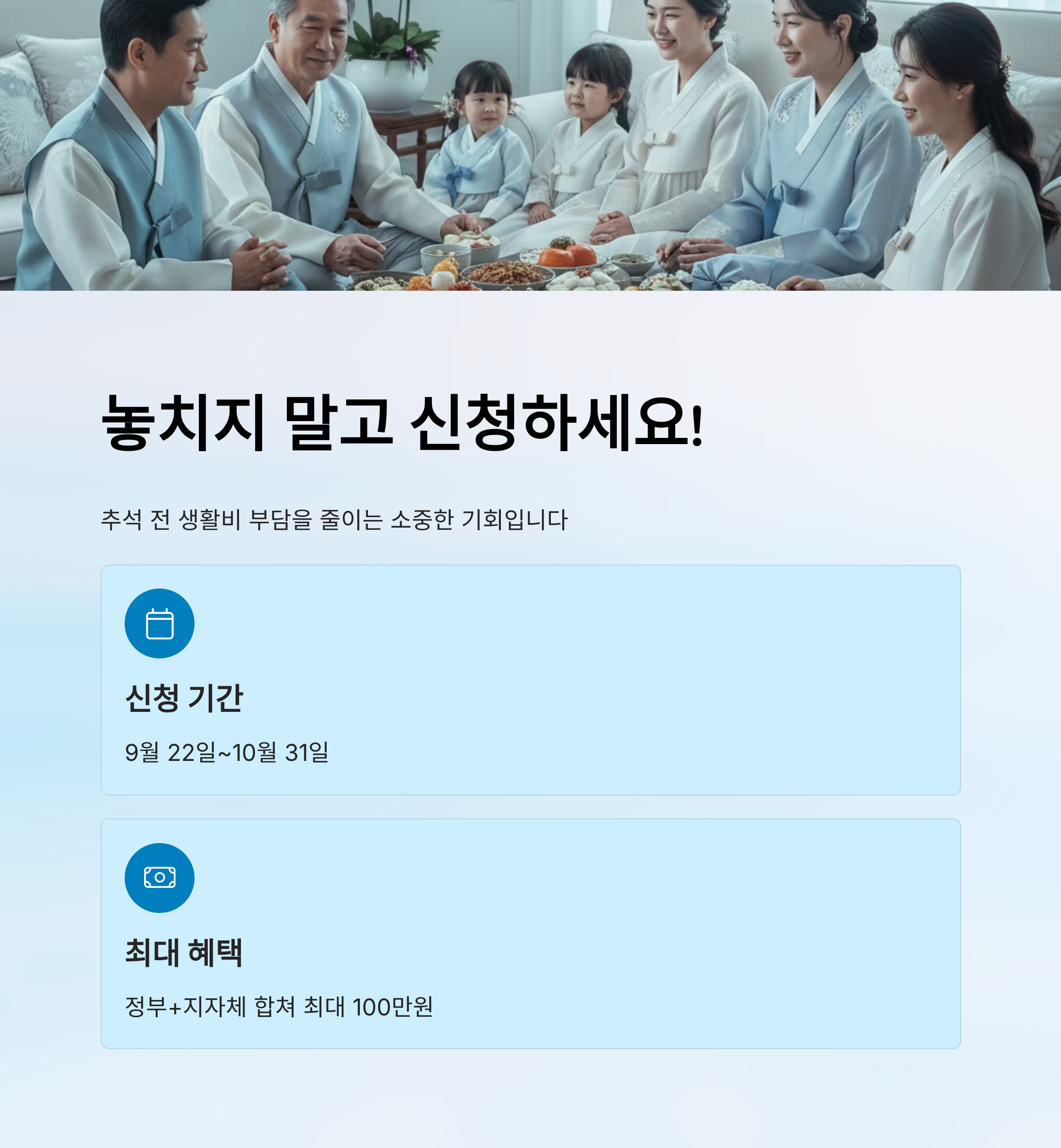 한눈에 보면 복잡한 것 같지만, 사실은 이 3단계로 정리하면 간단해요. 특히 추석을 앞두고 생활비 걱정을 줄이는 데 큰 도움이 되니, 꼭 신청 기간을 지켜서 놓치지 말고 챙겨 보세요. 🙏