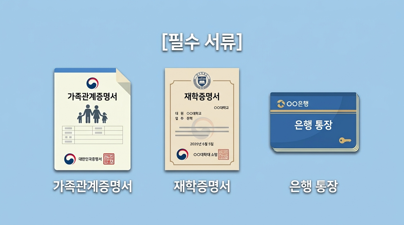 준비하셔야 할 서류는 딱 세 가지만 기억하세요. 첫째, 가족관계증명서(본인과 자녀 관계 확인용). 둘째, 자녀의 재학증명서(또는 입학확인서). 셋째, 통장 사본입니다. 서류는 최근 3개월 이내 발급된 것이어야 하며, 주민등록번호 뒷자리는 가려서 제출하는 것이 개인정보 보호를 위해 좋습니다. 요즘은 정부24 앱에서 PDF로 바로 내려받을 수 있으니 종이로 출력할 필요도 없답니다.