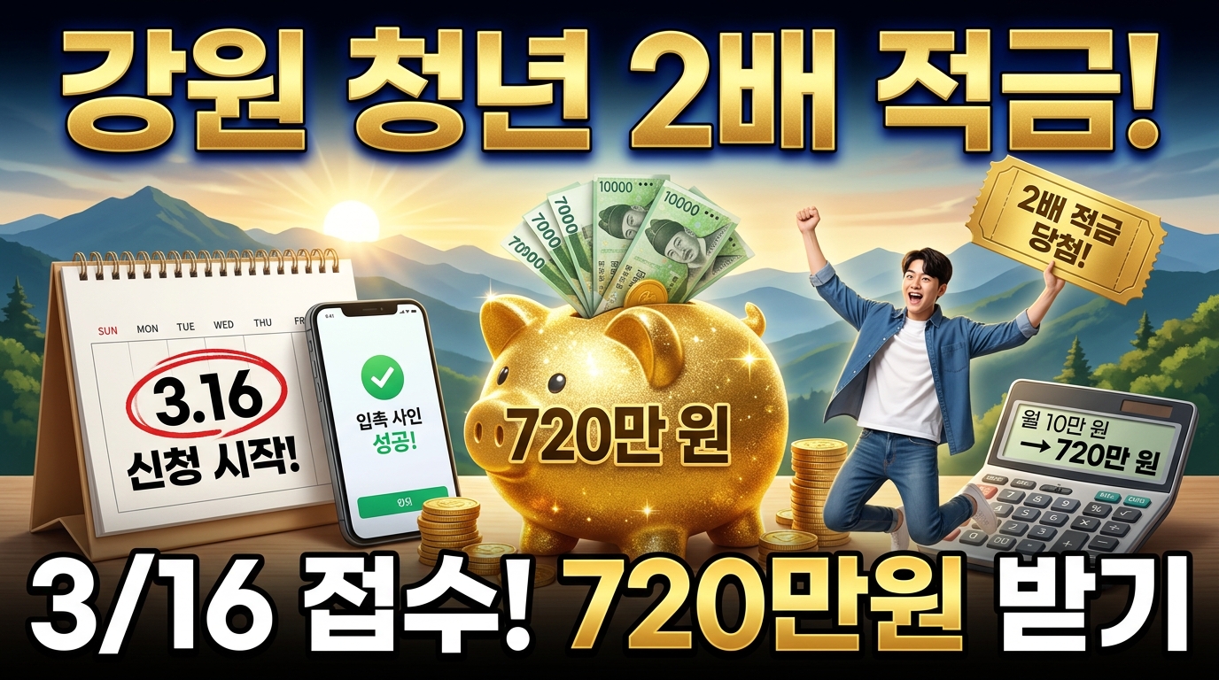 안녕하세요! 오늘도 청년 여러분의 든든한 경제적 파트너가 되고 싶은 마음으로 따끈따끈한 소식을 들고 왔습니다. 오늘 3월 8일, 강원특별자치도에서 '2026년 강원 청년 디딤돌 2배 적금' 시행 계획을 정식 발표했는데요. 솔직히 요즘 물가도 비싸고 월급 빼고 다 오르는 세상이라 저축하기 참 힘들잖아요. 저도 사회 초년생 때 통장 잔고 보며 한숨 쉬던 기억이 생생해서 이번 소식이 더 반갑게 느껴지네요. 💰